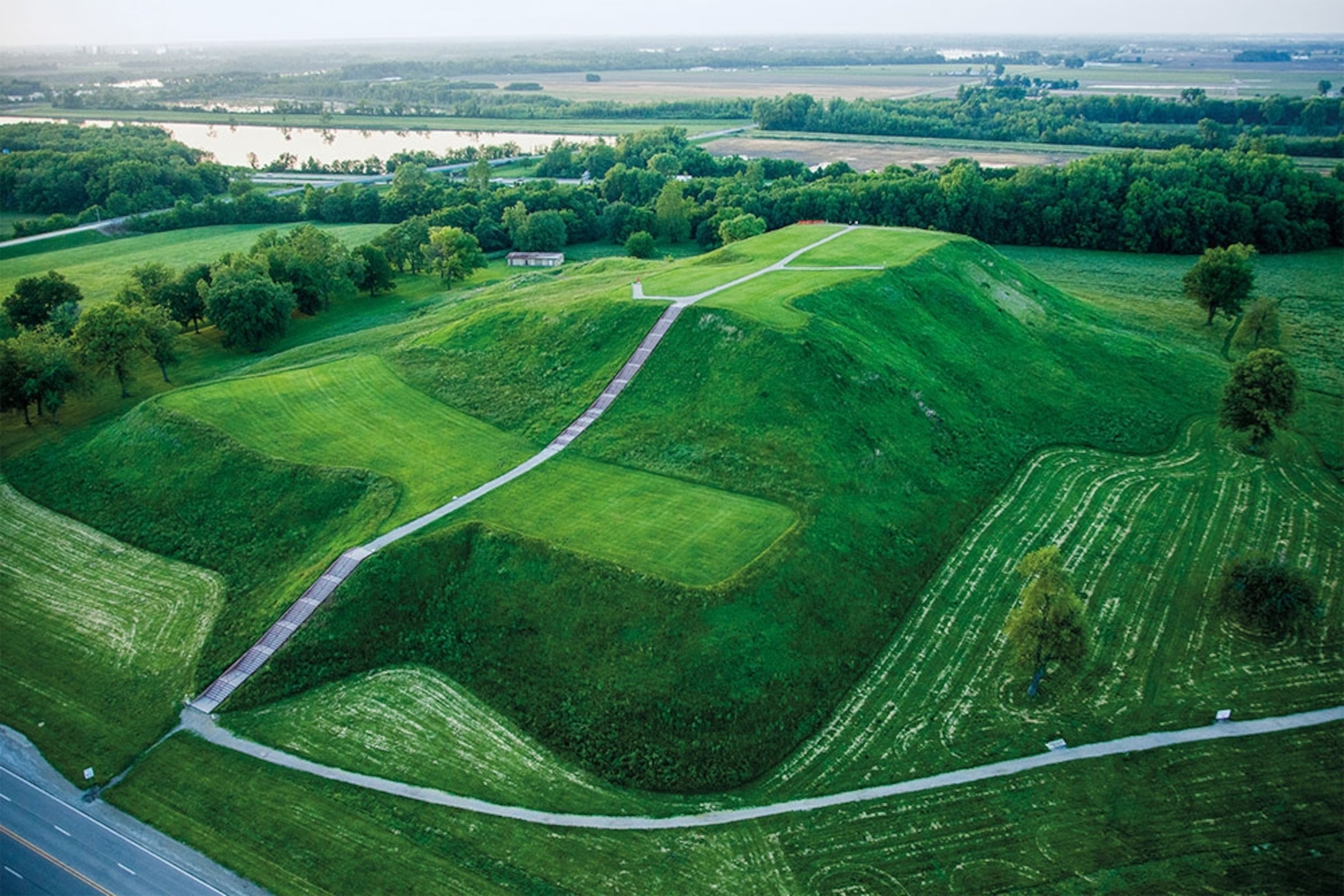 Cahokia, America's first metropolis: It is nicknamed “Woodhenge,” and also tracked the sun, moon, planets, and stars. It was just one of many impressive sites in a metropolis that flourished from about 1000 through the 1200s—though it was mysteriously abandoned afterward. The name of the settlement was Cahokia, built on mounds (pictured above) east of the Mississippi River in southern Illinois. It was the jewel of what was once the greatest civilization between the deserts of Mexico and the North American Arctic, Nat Geo’s History magazine reports.