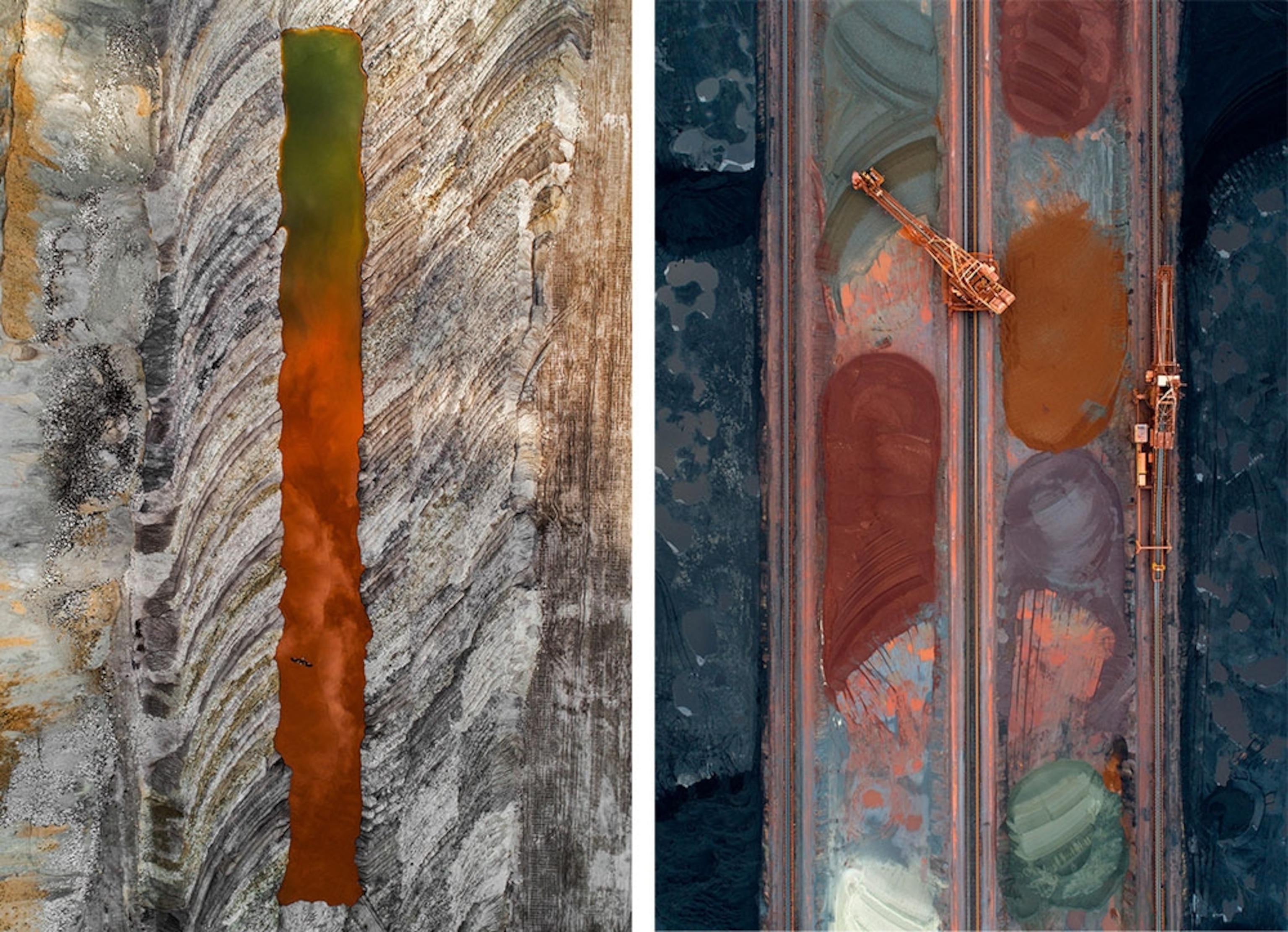A witness to what humans do: How have we changed our planet? Photographer Tom Hegen shows us in startlingly vivid ways, usually in images taken from above. In these images from a coal-mining operation in Germany, Hegen tells Nat Geo he hopes to draw attention, not airbrush destruction. Above left, water runoff after mining can carry toxic concentrations of minerals into drainage ponds. Those minerals can contaminate groundwater. On the right, excavation and storage sites, angular and symmetrical can suggest artistry, even beauty.