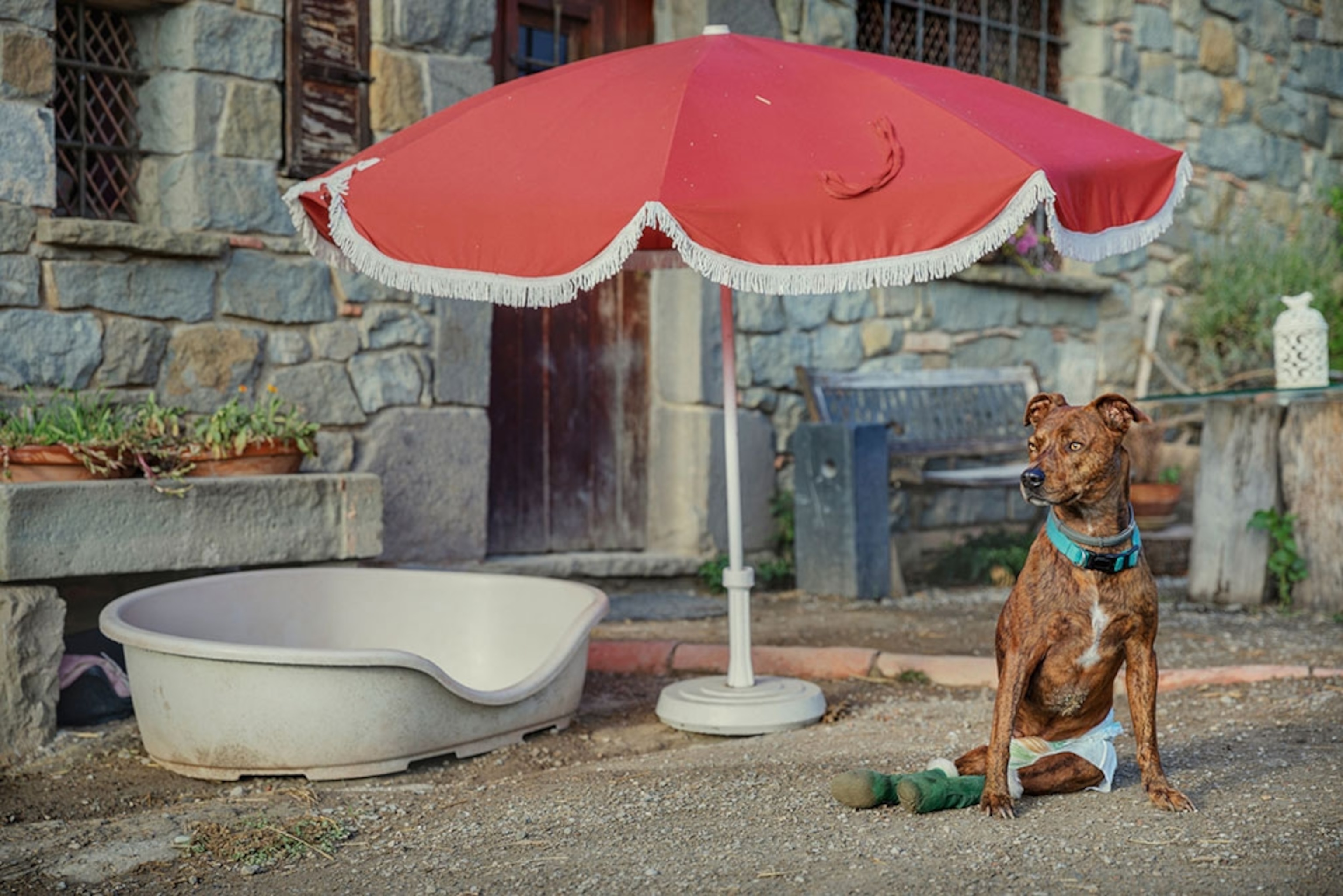 Not the end: Neo, a pitbull at El Hogar, was found sick and paralyzed in some bushes in 2016. Although Neo still has no sensation below the waist, intensive medical care and physiotherapy mean the dog now can run around easily on front legs, exploring El Hogar’s 60 acres. Read—and see—the rest of the story.