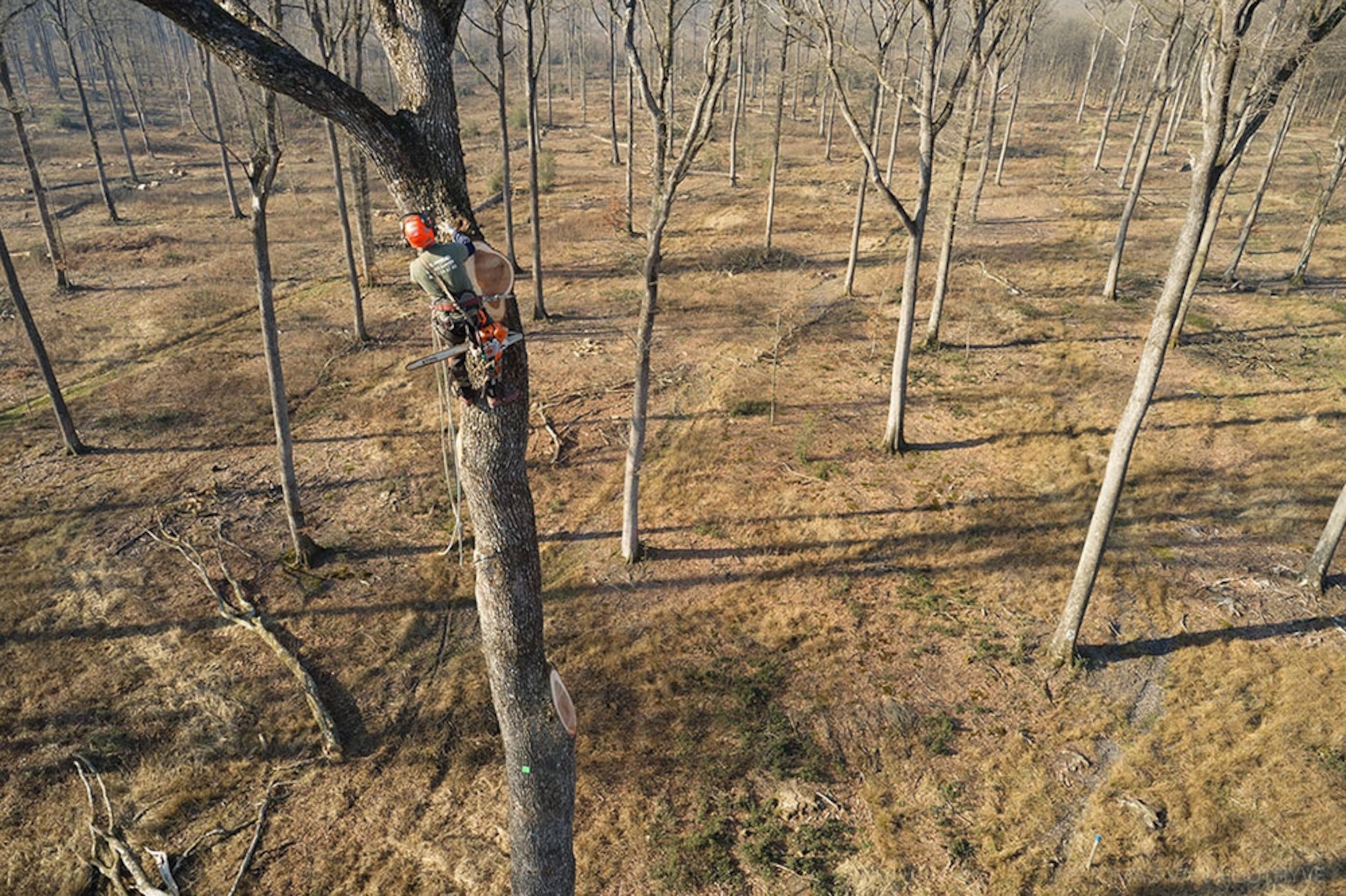 Tending the forests: For centuries, foresters in France have maintained the regeneration of the woods by planting new trees to selectively replace the old. Photographer Thomas van Houtrye shows a trimmer climbing an old oak tree that grew exceptionally tall in the cultivated forest of Bercé. This tree, estimated at 230 years old, is one of eight from the grove that will be harvested this year to form the base of the new spire of the cathedral of Notre-Dame of Paris. The previous spire burned in April 2019.