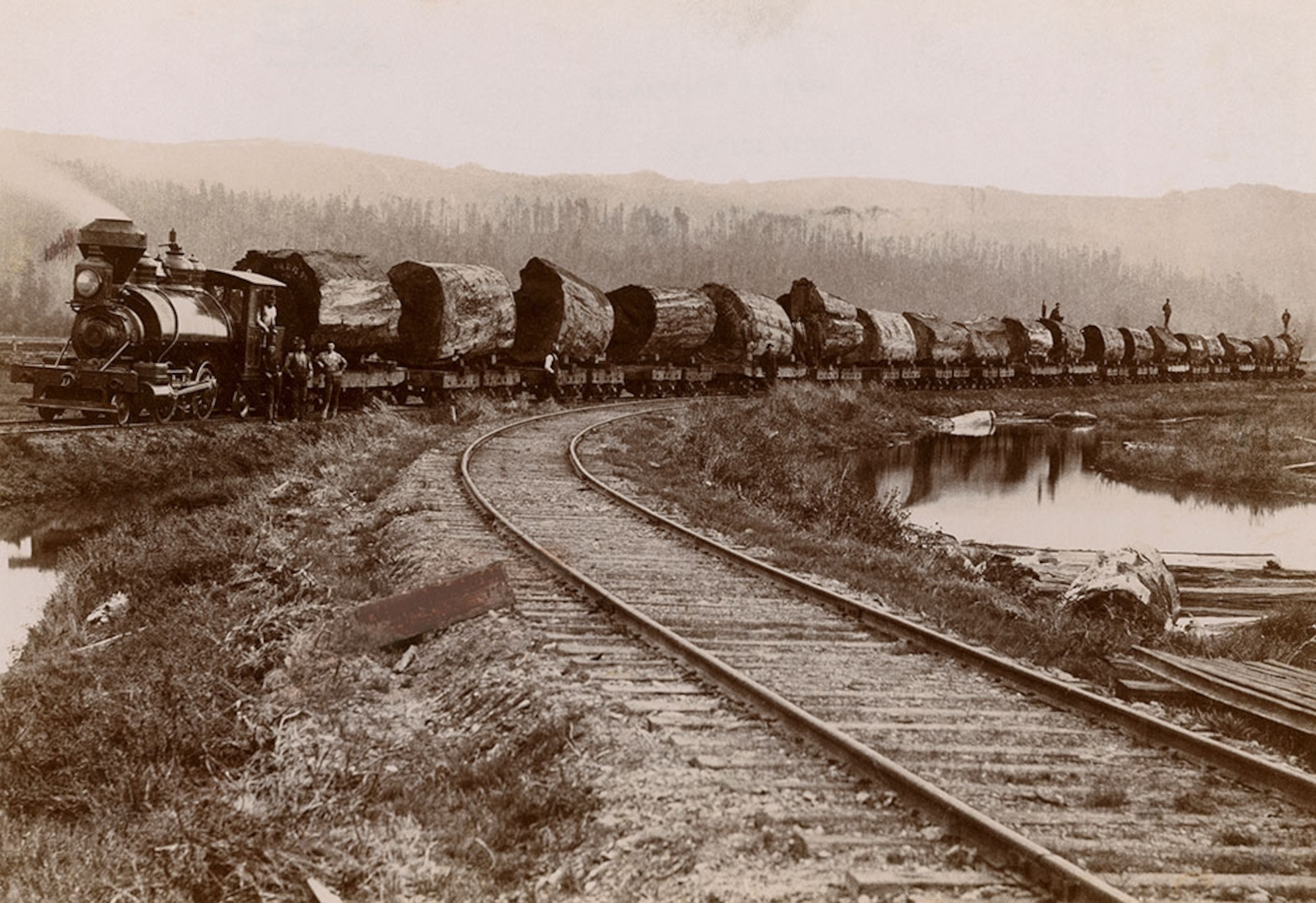 Piece by piece: What’s that coming down the track? One half of a Redwood tree in California’s Humbolt County, headed to the mill. This image illustrated a 1907 National Geographic article entitled “Saving the Forests.” In it, the Forest Service’s Herbert A. Smith detailed the economic value in preserving America’s natural forests. He argues deforestation should be properly managed to keep ecosystems in balance, particularly amid flooding and drought. Sara Manco, senior photo archivist at the National Geographic Society, chose this image and found Smith prescient. “Though it’s over 100 years old, I found this article still relevant today,” Manco tells us.