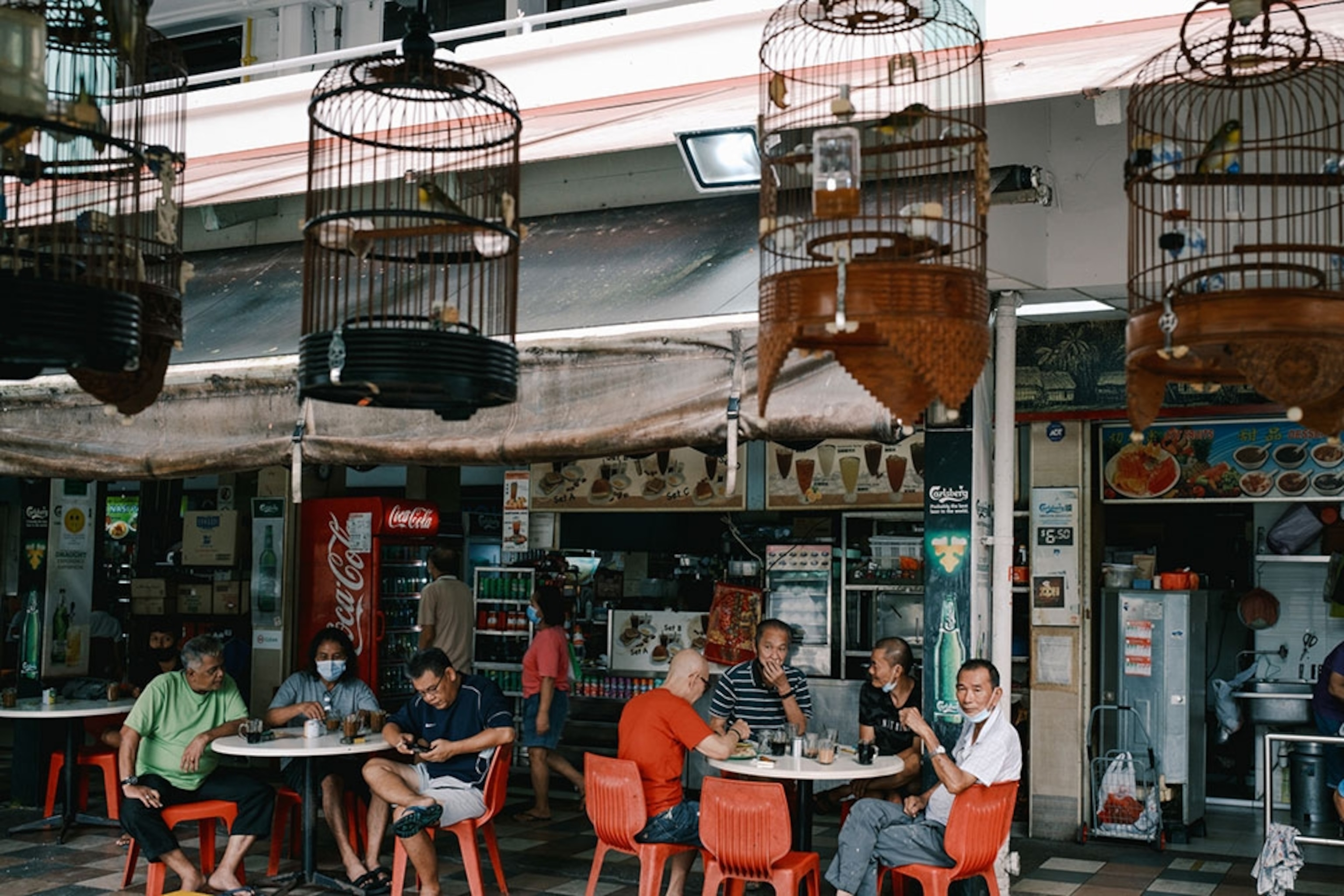 “My most vivid childhood memory was going to the wet market with my grandmother and having a breakfast of chwee kueh (steamed rice cake with preserved radish) and warm soy milk at the hawker center,” says Ng. While tasty bites might not last long, the creative genius of these “cultural heroes” should last a lifetime—and beyond. (Pictured below, Customers sit at a kopitiam (coffeehouse) in a hawker center next to the Kebun Baru Birdsinging Club.)