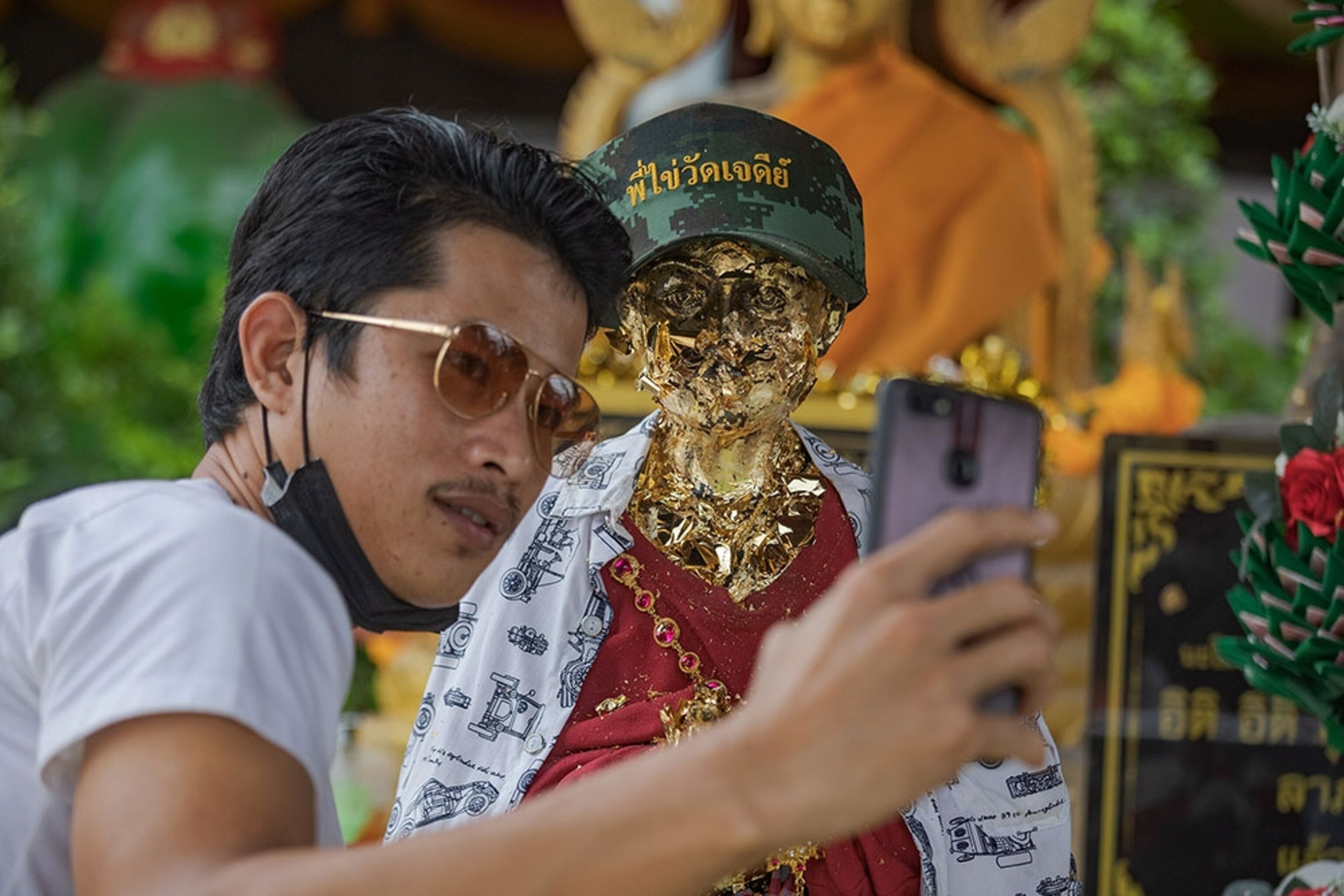 Egg boy: That’s the informal name of an 18th-century statue in southern Thailand that has suddenly become popular since the COVID-19 pandemic hit. Early fans claimed the statue brought winning lottery numbers and other wealth and success. Now thousands of Thais, many suffering from the collapse of the tourism industry, have begun streaming daily to Wat Chedi, the provincial Buddhist temple housing the statue. One tourist, named Diw, told Nat Geo: “I don’t really believe in this stuff, but I thought I’d give it a try.” (Pictured above, a pilgrim takes a selfie with a dressed-up replica of the statue outside the temple.)