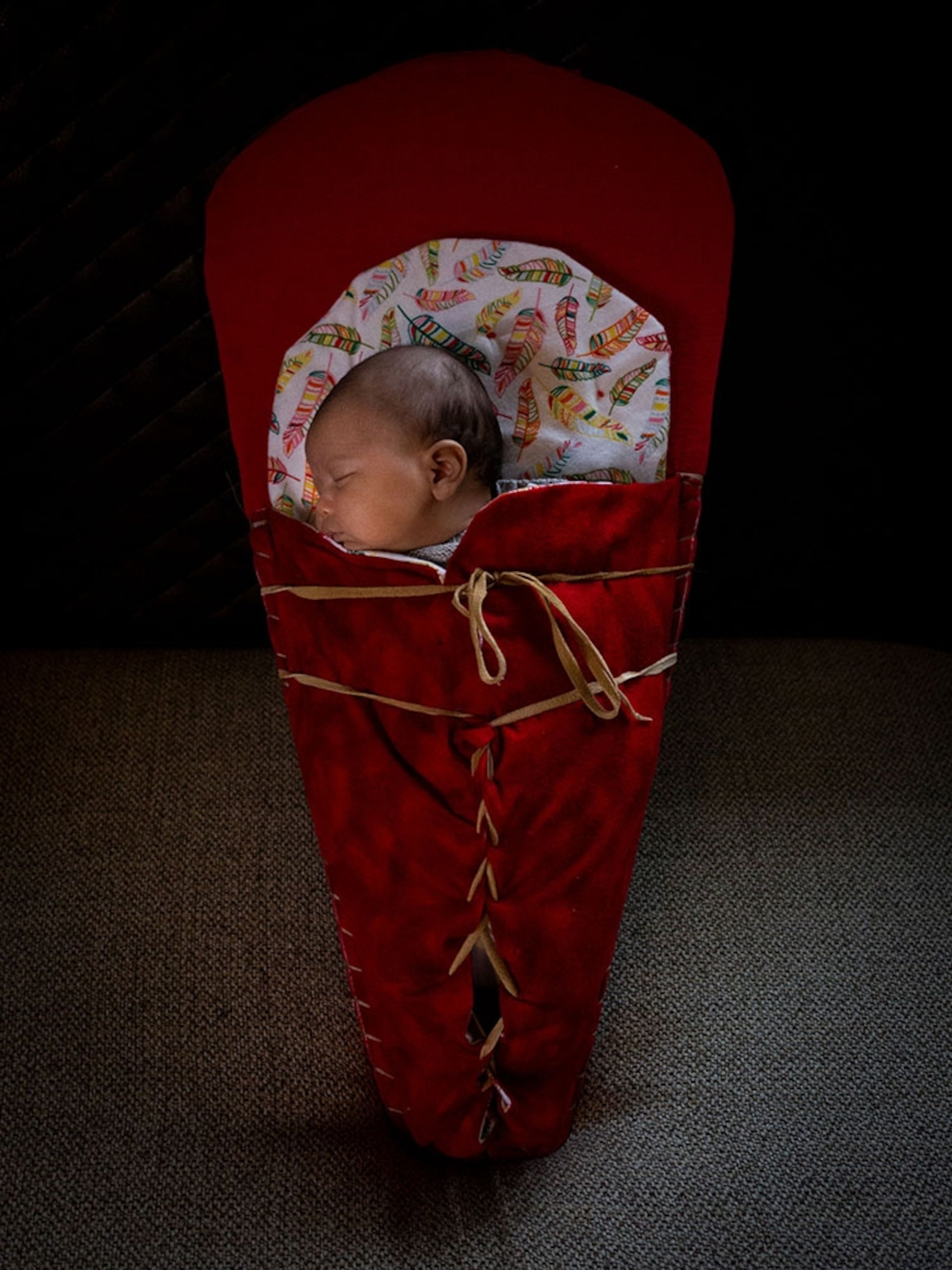 One of Tailyr’s ongoing projects looks at the blood quantum system, initially used in the early 1900s by the U.S. government to identify, regulate, and calculate the amount of “Indian blood” a Native American person possesses. From birth, blood quantum requirements can have major implications on a child’s future. (Pictured above, a six-week-old who, Tailyr says, may be greatly affected throughout life by the infant’s blood quantum status.)