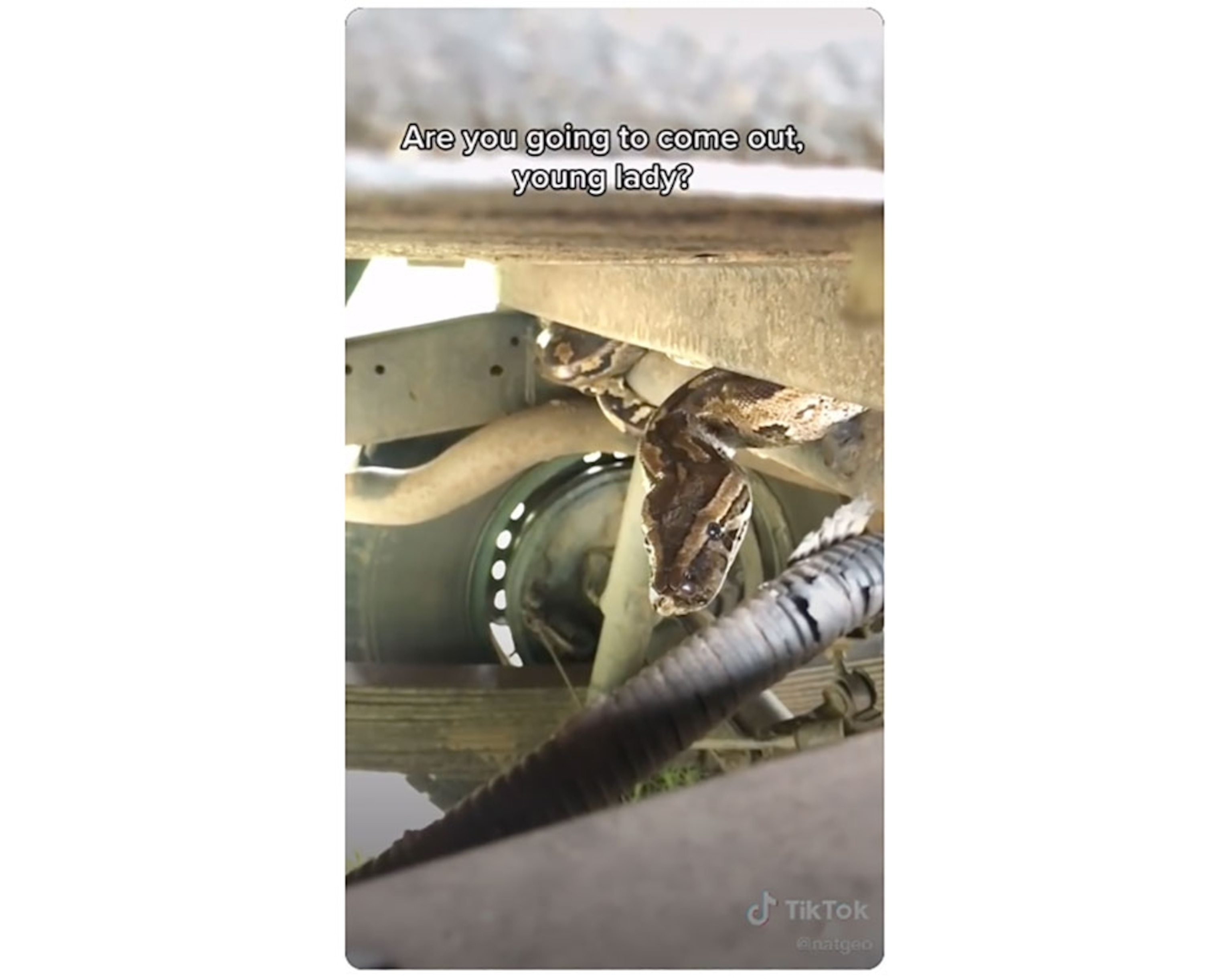 Python in your vehicle: Don’t you just hate it when an uninvited guest slithers in for the ride? That’s what happened in Mozambique to photographer and Nat Geo Explorer Charlie Hamilton James, who discovered the giant snake coiled up in the undercarriage. In a TikTok video, Charlie appears amused at the visitor, which freaks out a colleague. See it.