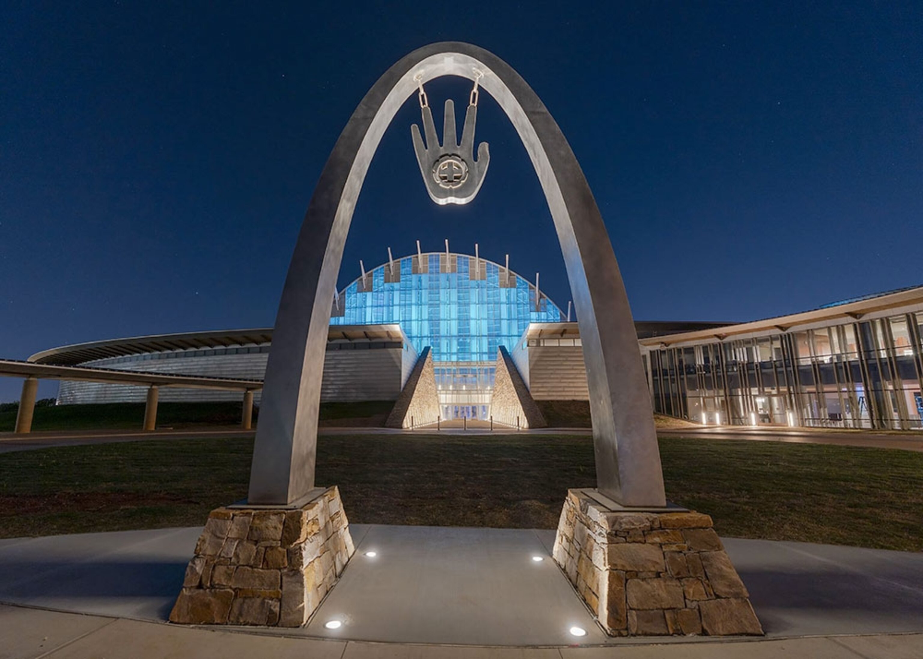 Finally open: After three decades of planning, the First Americans Museum in Oklahoma City is open. A tribute to Native artists, architecture, and history, the museum celebrates Oklahoma’s 39 nations, which represent more than 60 percent of all Native Americans in the country, Nat Geo reports. (Pictured above, “Touch to Above,” by Cherokee artists Demos Glass and Bill Glass Jr., at the entrance.)