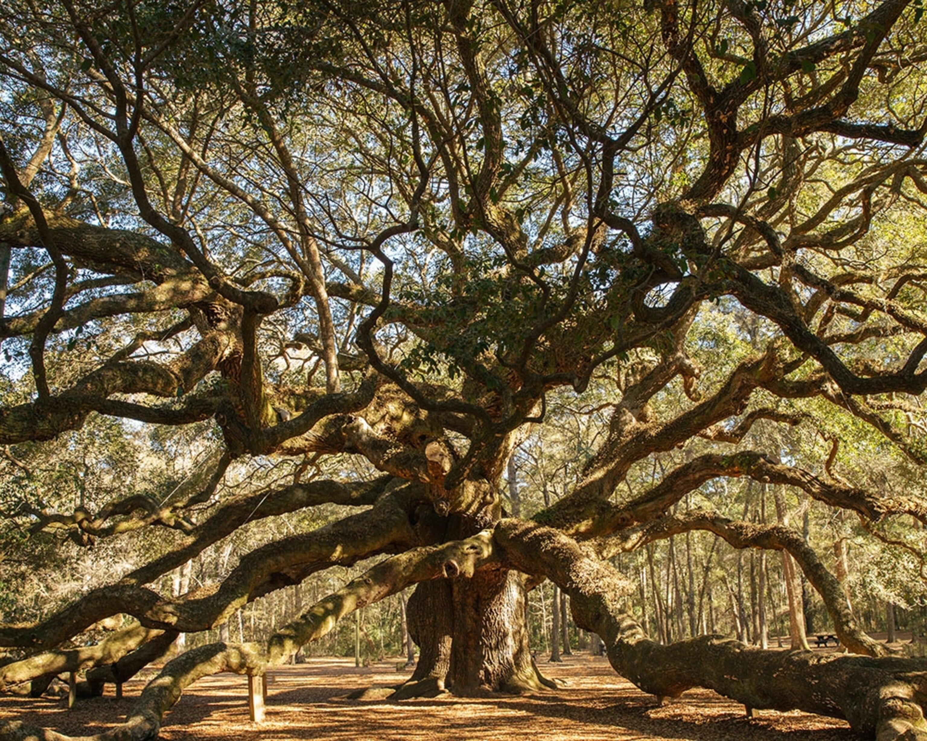 The Angel Oak: Down a dusty dirt road in South Carolina sits a droopy southern oak that is believed to be the oldest tree east of the Mississippi River. The Angel Oak is more than 400 years old, with branches that dive in and out of the earth “like a serpent in the ocean,” says Michael George. The photographer made this image in the morning light.