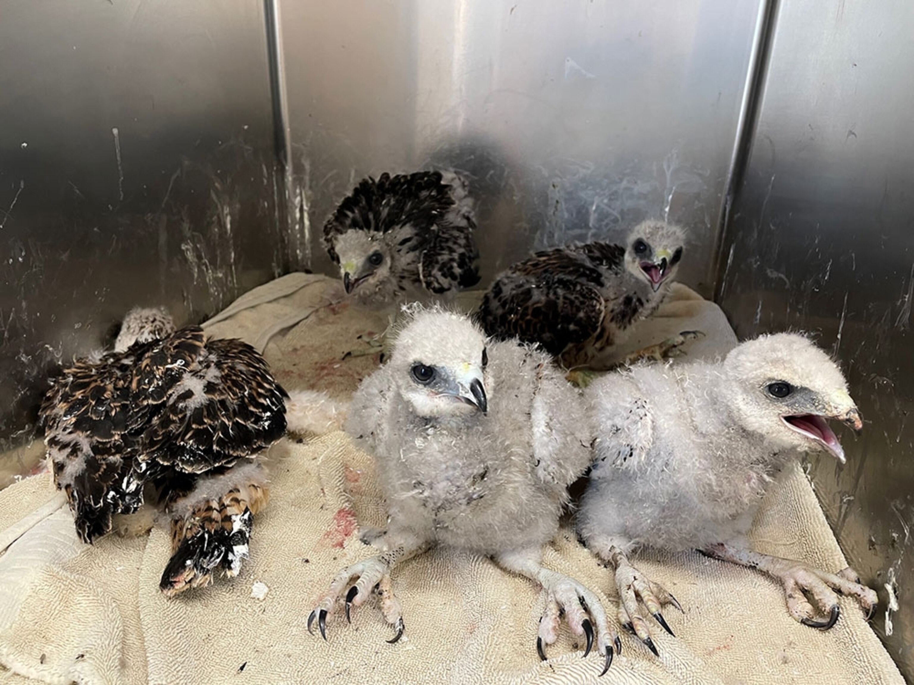 How animals deal with record-breaking heat: The heatwave in the Pacific Northwest coincided with nesting season, so baby hawks were unable to fly to escape the scorching heat and fires. So they did the only thing they could—fall from their nests. Nearly 50 baby Cooper’s and Swainson’s hawks were rescued from the ground beneath towering pines in Washington and Oregon, Natasha Daly reports (Pictured, five rescued baby hawks in an Oregon wildlife center).