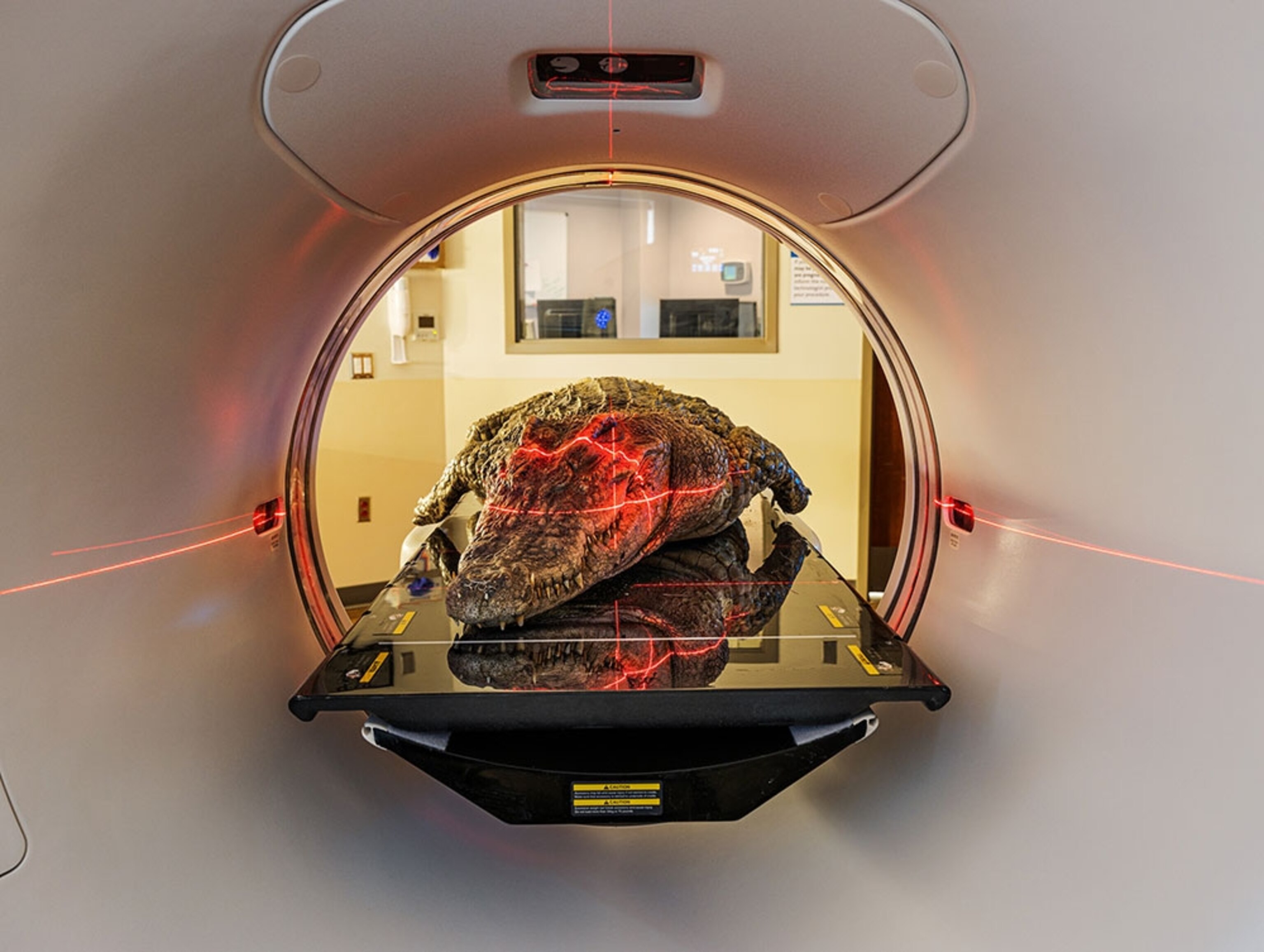 Dinosaur clues: For more than two decades, Ohio University paleontologist Lawrence Witmer has run frozen animal carcasses—here, a Siamese crocodile—through the CT scanners of Ohio’s O’Bleness Hospital. These new data have helped spark a revolution in scientists’ understanding of extinct dinosaurs.