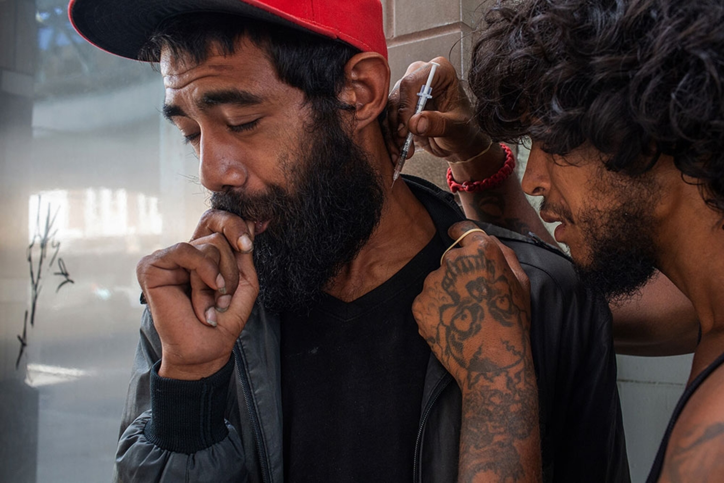 Trying to stop the pain: Unable to find a usable vein in his arm, Fernando Irizarry asked an acquaintance to inject a slurry of discarded drugs into his neck. Like thousands of people, Irizarry’s opioid addiction began with pain medications he took after an accident. He invited photographer David Guttenfelder to observe his life in Philadelphia as part of our magazine cover story on pain last January.