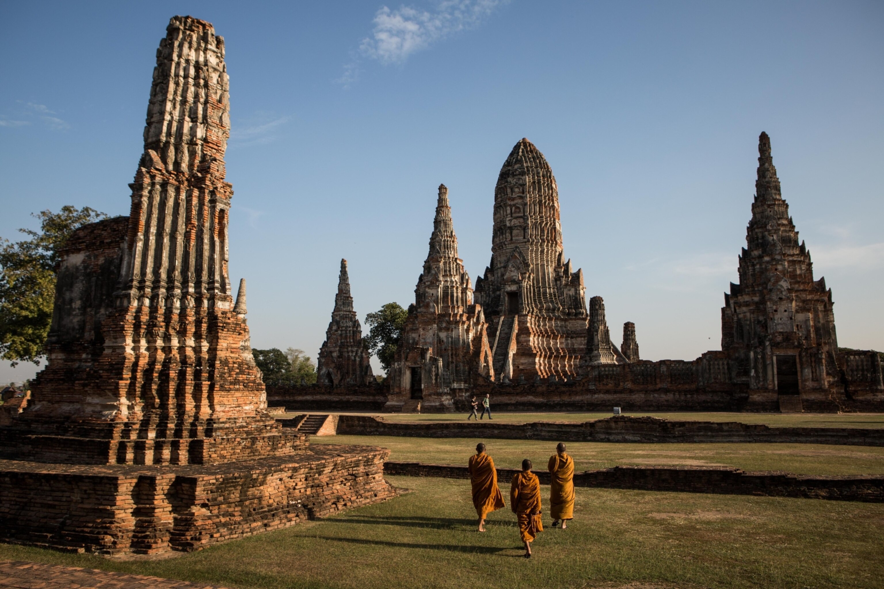 In the still of the evening: As golden hour sets in, three monks walk through the ancient prang, or towerlike spires, of Ayutthaya, Thailand. Now a UNESCO World Heritage site, these ruins made up Thailand's historical capital of the Siamese kingdom from 1350 until 1767.
