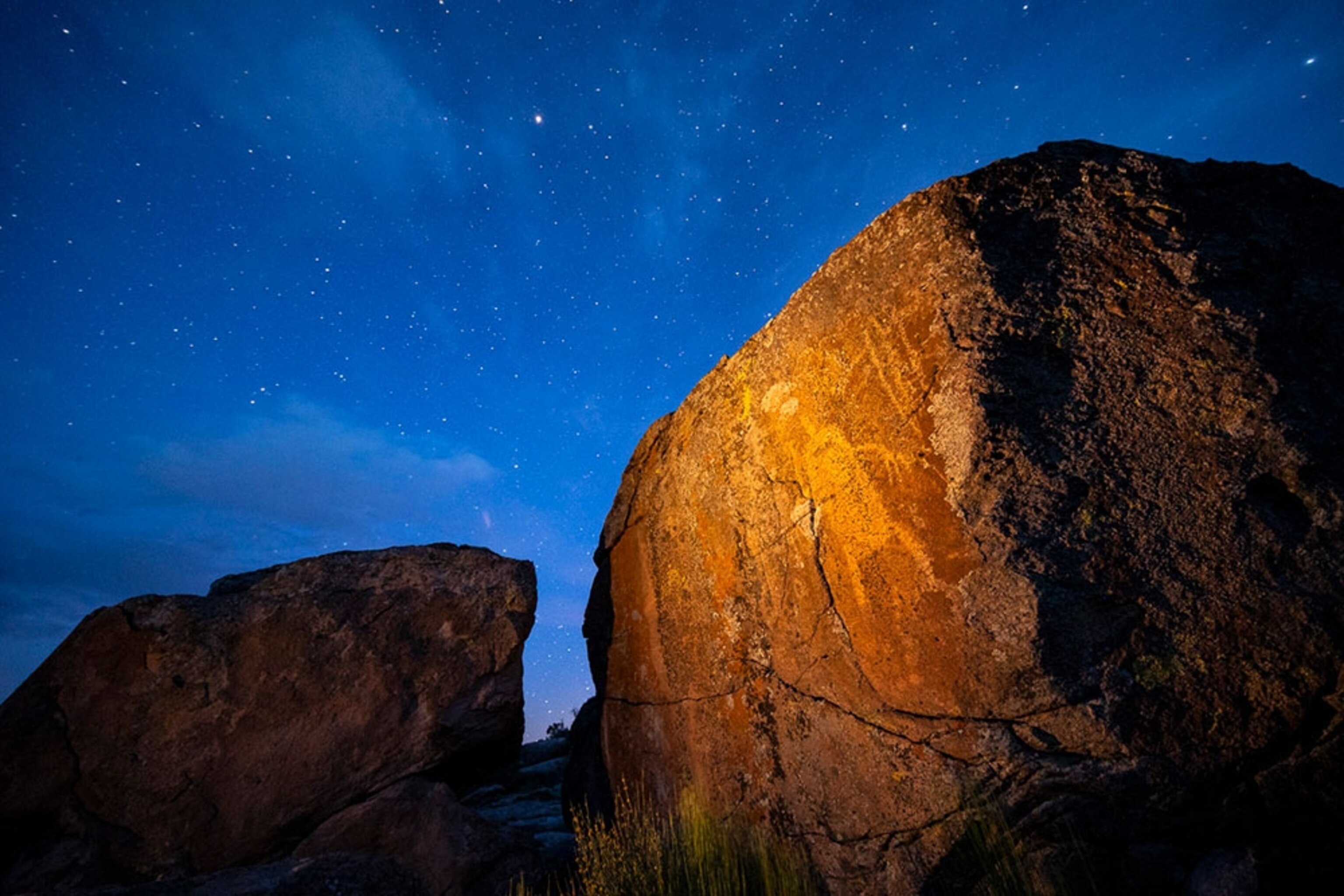 History speaks: In the wild and mostly empty Pahranagat Valley in southern Nevada, traces abound of the hunter-gatherers who once lived there. Before dawn, photographer Stephen Alvarez captured an anthropomorphic figure on a rock in the valley’s Basin and Range National Monument. Thought to be 3,000 to 5,000 years old, these anthropomorphic figures are associated with those early hunter-gatherer cultures in this part of the American West.
