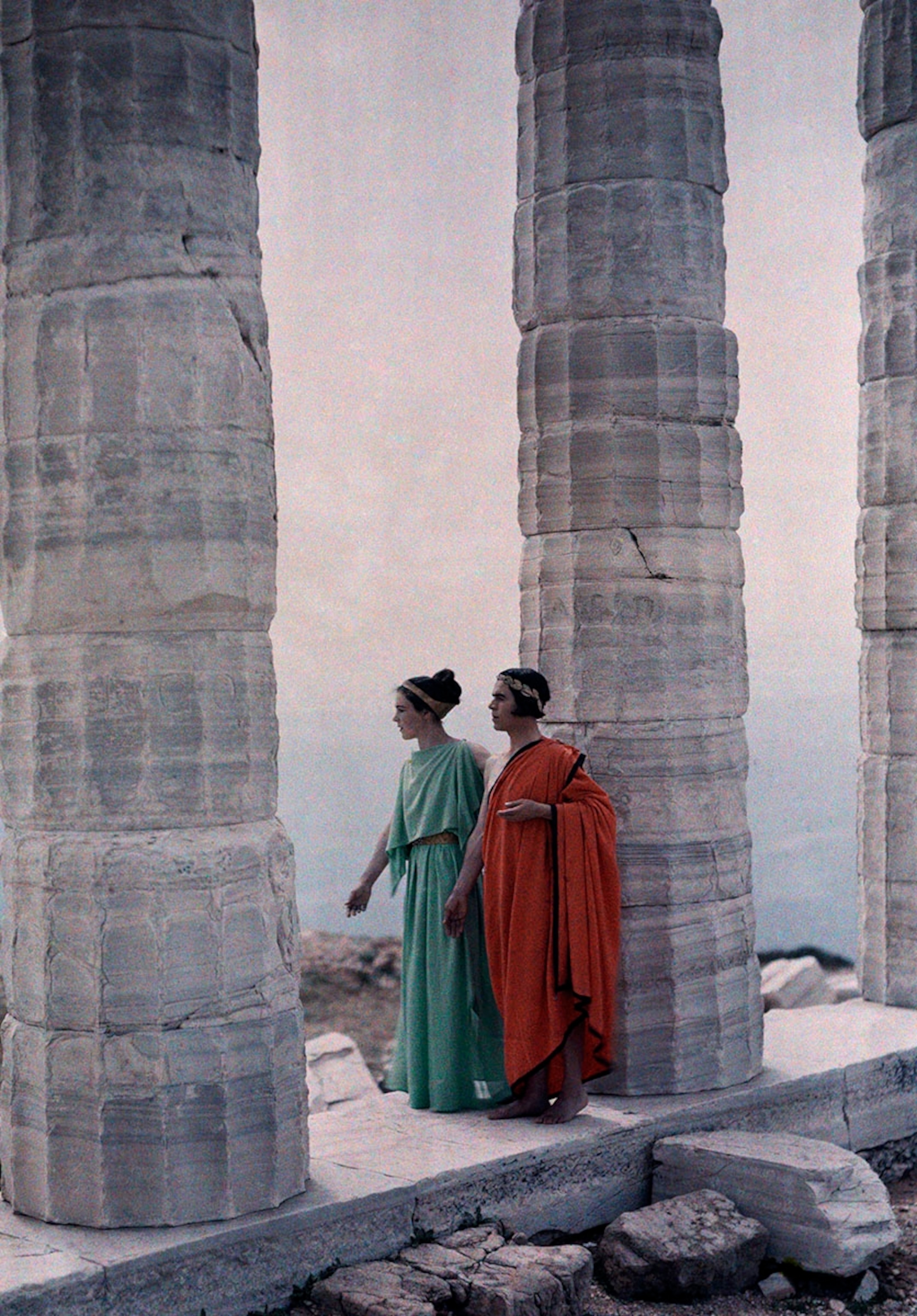 From the vault: Two dancers in costume stand between the columns of Poseidon’s Temple, Greece, 1930.