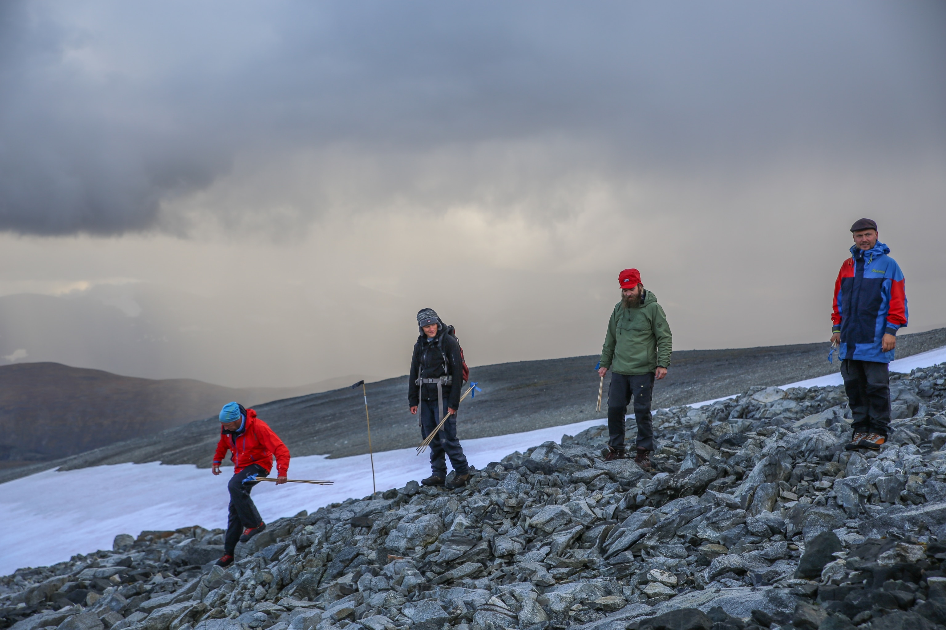 Ancient hunting: Researchers have found 68 arrows, dating back as far as 6,000 years, on a high mountain ice patch in central Norway. That’s more arrows found than in any other ice patch in the world, say researchers. The ice patch is already revealing clues about centuries of reindeer hunting, and scientists are racing unlock more of its secrets amid rising annual temperatures. “The steady melting means archaeologists have to move fast while preserving as much information as possible,” Andrew Jacobs reports for Nat Geo. (Above, surveyors moving around areas of retreating ice; below, a Viking Age arrow from Norway with preserved iron arrowhead, sinew and protective birch bark for the lashings.)
