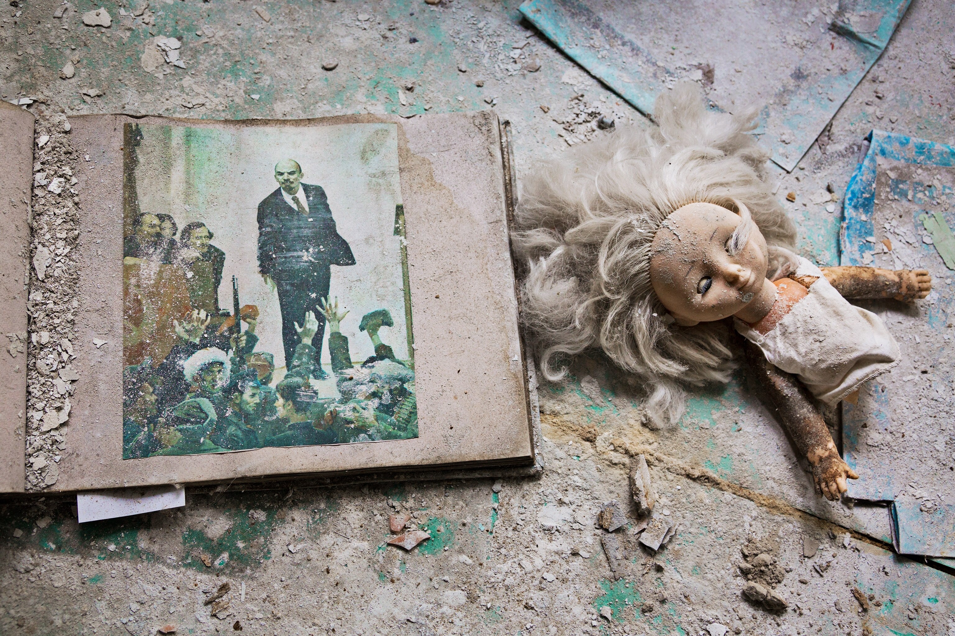 From Chernobyl: A battered doll keeps company with an image of Vladimir Ilyich Ulyanov—commonly referred to as Lenin—in the Chernobyl Exclusion Zone. He was born 150 years ago, on April 22. Lenin was one of the most divisive and prominent political figures in history, overseeing Russia’s transition into a fully communist state and creating and implementing Marxism-Leninism as a cornerstone of the Soviet Union.