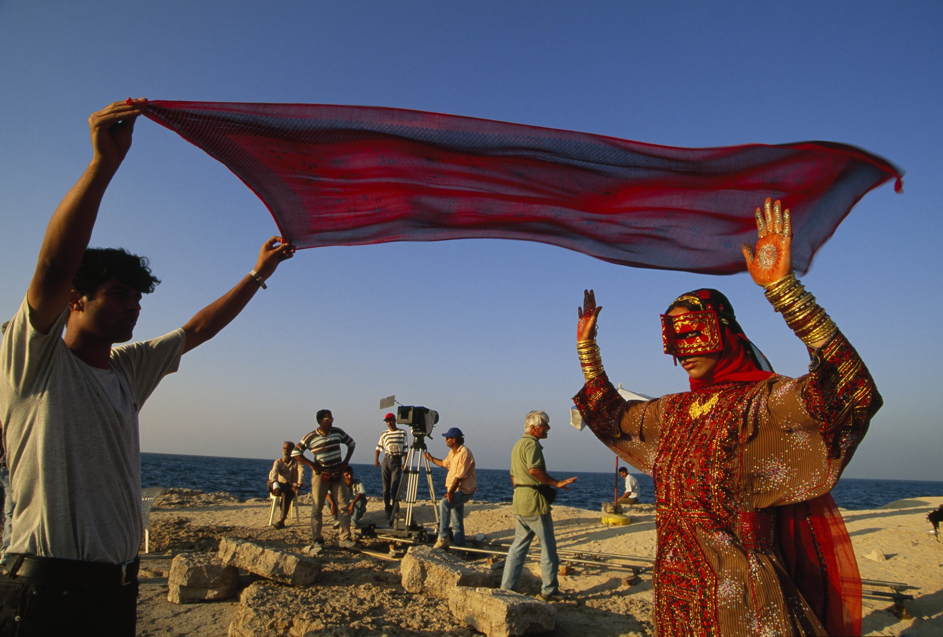 In spite of censorship: Iran’s filmmakers have had to tread carefully and restrict their content over the past few decades, but they have created stunning works. In this image, used for a 1999 National Geographic story, photographer Alexandria Avakian shows director Bahram Beyzaie (pictured above in green), on set. Avakian photographed a number of stories for Nat Geo on life in the Islamic Republic, says our senior photo archivist, Sara Manco. “Her focus on daily life brings an intimacy to her imagery, while also reflecting the country in a modern context,” Manco writes. “The dramatic light and contrasting colors of the blue and red make this a visually striking image, and I love the fact that this is all part of (or close to) a film set."