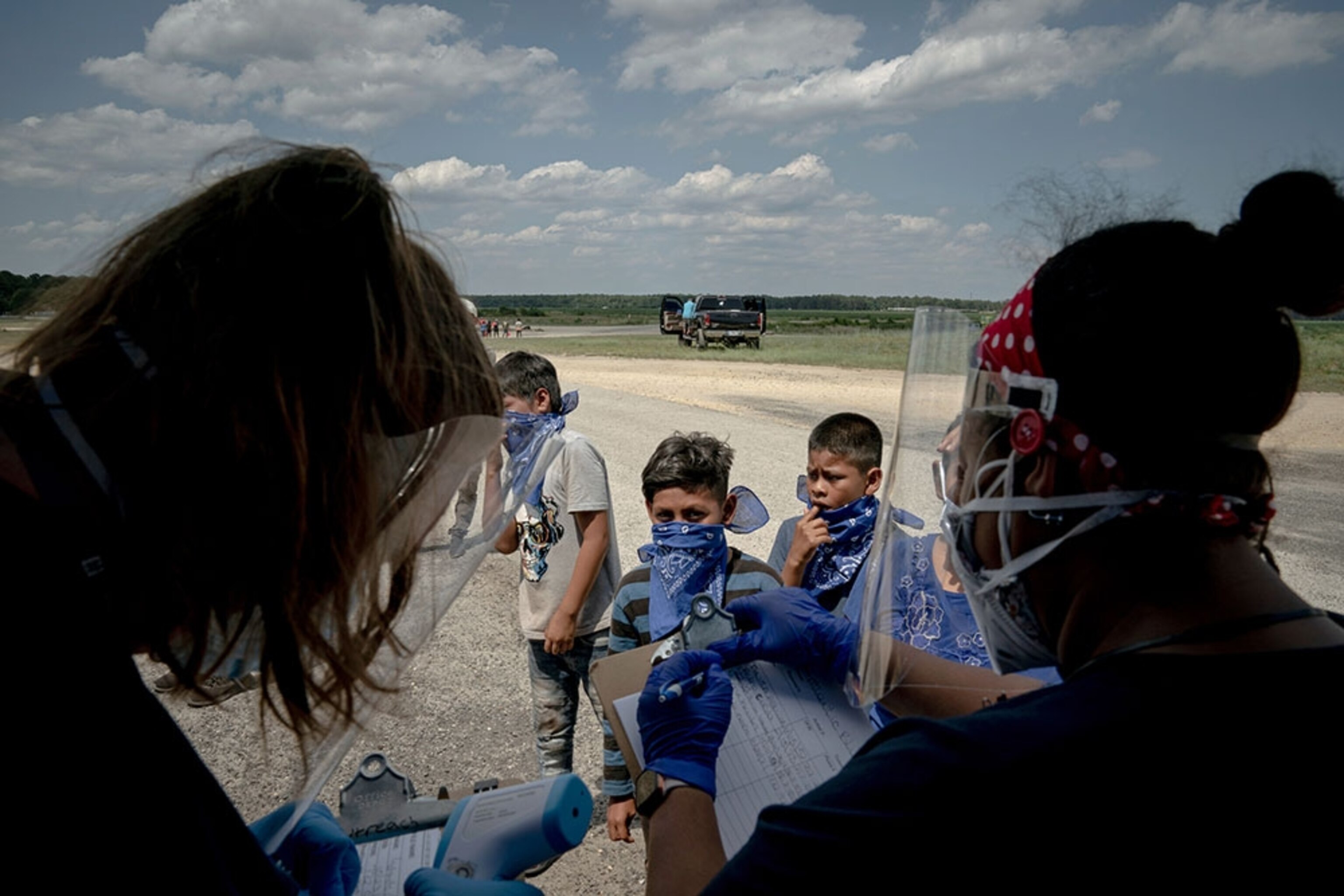 The kids: “I had no idea so many workers brought their families with them,” Katie tells us, “and I definitely wasn’t expecting that I’d spend so much of my time working on this story just hanging out and playing with all these adorable kids.” Above, farmworkers and their children register at a COVID-19 testing and PPE distribution pop-up tent, run by Southern Jersey Family Medical Centers, which does much of the farm testing.