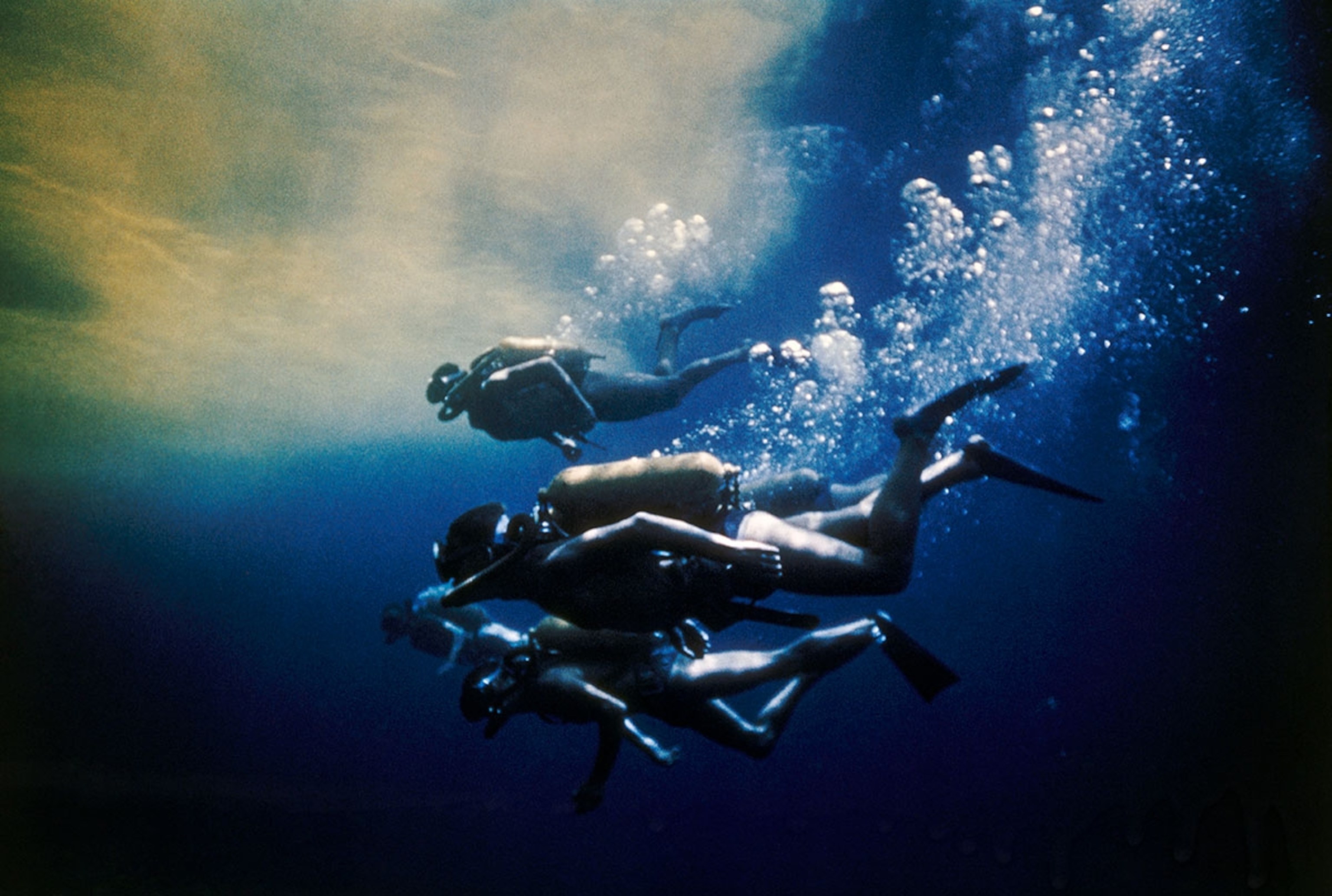FROM THE ARCHIVE: “A sparkling trail of bubbles follows divers swimming at the equator.”