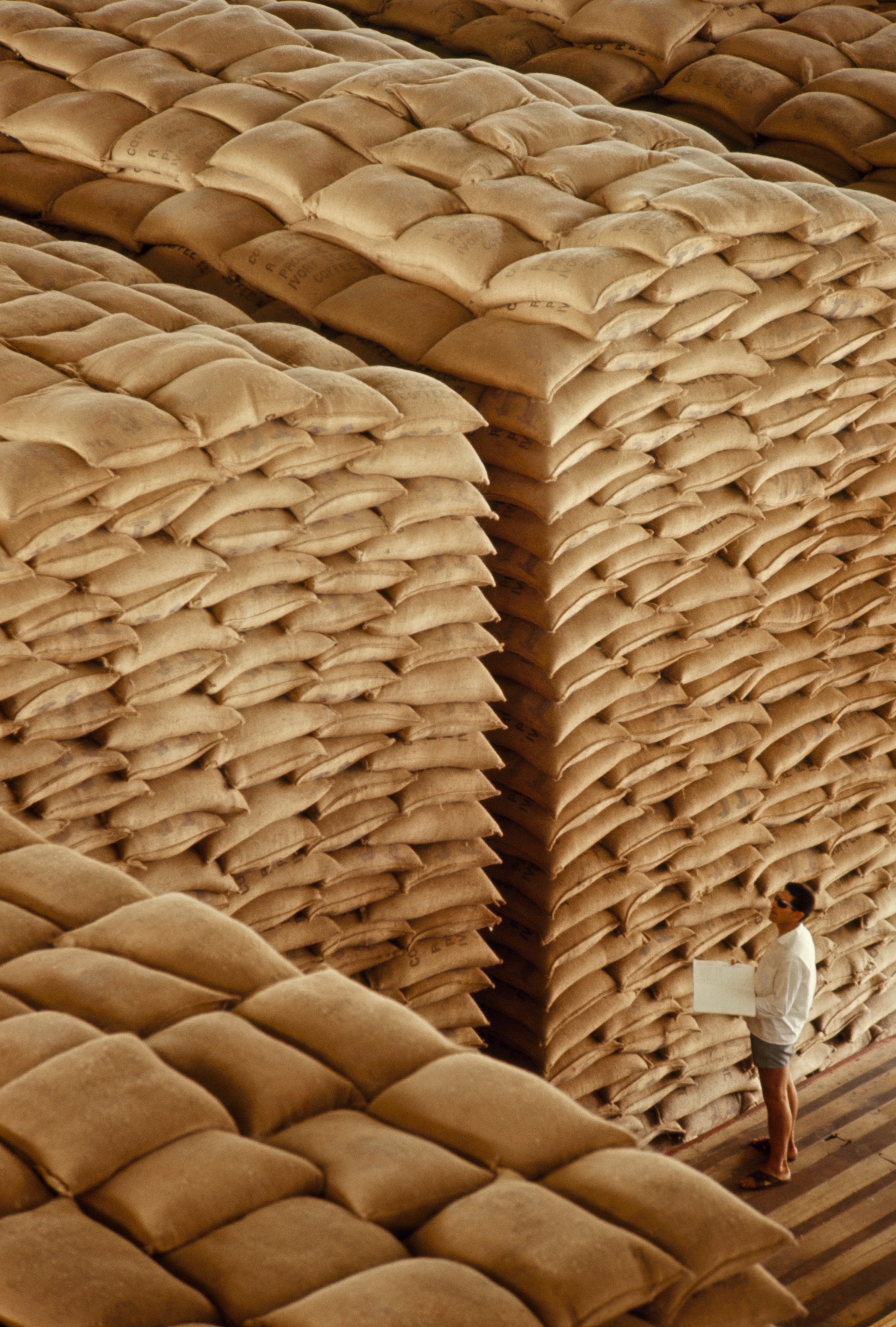Tallyman: Photographer James P. Blair took this image of a man tallying stacks of coffee beans in the Ivory Coast for a 1966 National Geographic article. The West African nation, ranked as the world’s third largest coffee producer in the 1960s, was featured after its recent independence from France. The scale of the image caught the attention of Sara Manco, our senior photo archivist. “I love,” Manco tells us, “how the lone figure is dwarfed by towers of coffee bags, showing just how much this country produces."