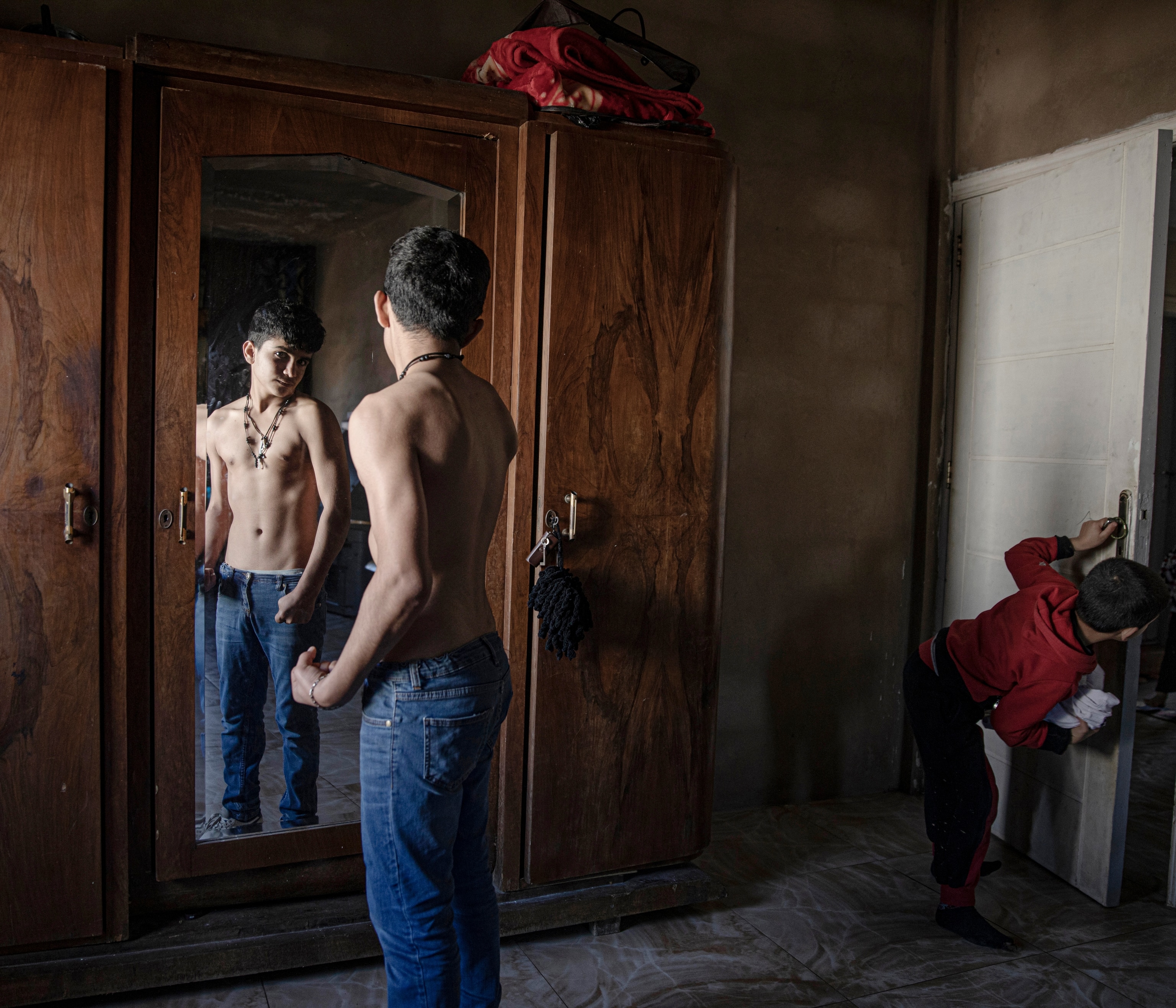 Getting stronger: Lebanon is in an economic crisis—and poverty among the over 1.5 million Syrian refugees in the country is increasing. Qutaiba Obeid, 15, dreams of one day getting to work out at a real gym, photographer Magnus Wennman says. Qutaiba wants to be bigger and stronger. And maybe that's what he imagines when he looks in the mirror, flexing his muscles: how his thin teenage body will soon develop into a man. In some ways Qutaiba is already a man; he's been forced to take on the responsibility of an adult. At age 11, he started working in a grocery store, cleaning and picking up goods, from 9 in the morning and until 11 in the evening. For that, he earned about $6 a month. "I was very tired then. I worked every day. The salary went to my parents," he says.