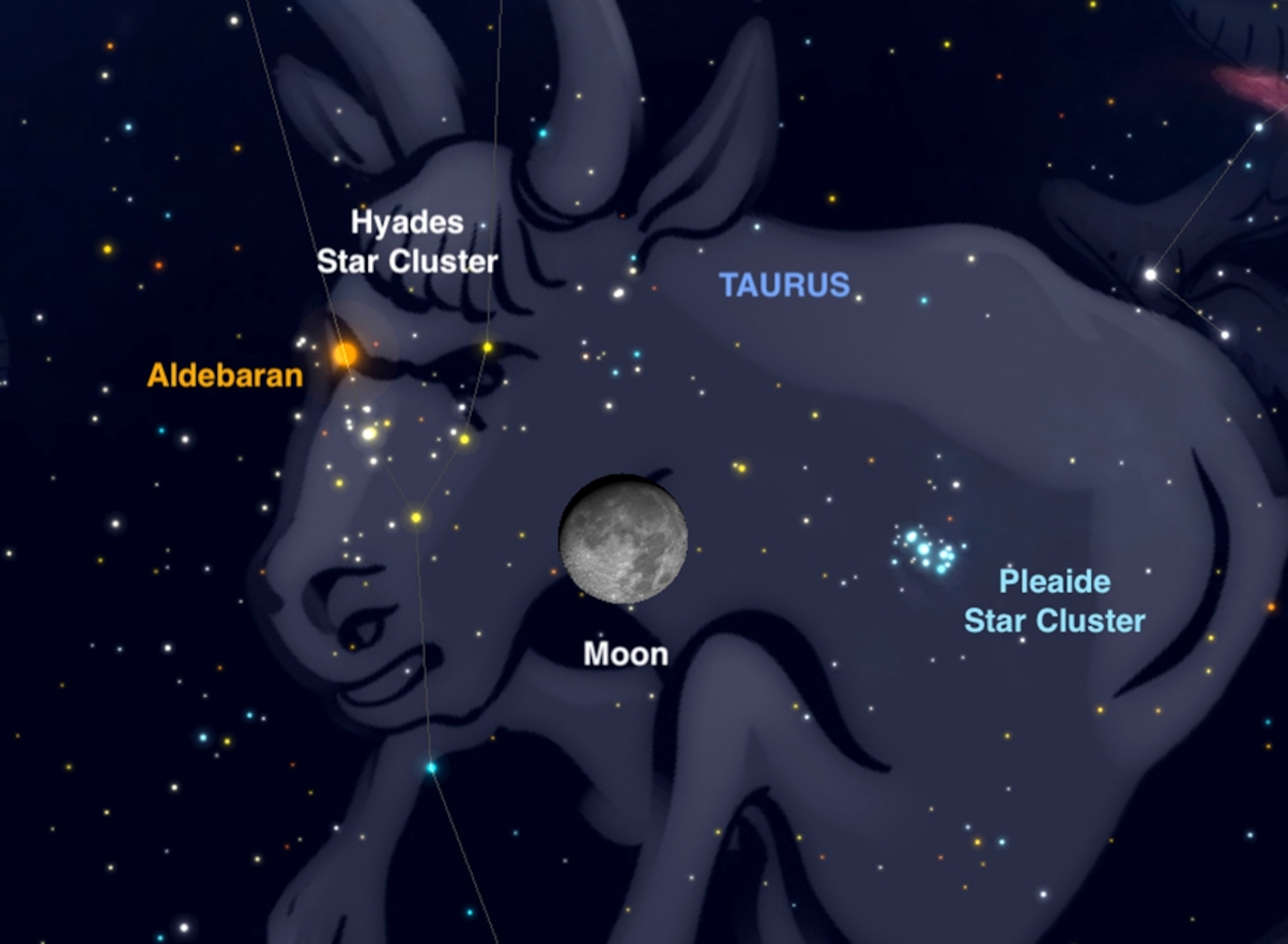 Cosmic treasures: Tonight sky-watchers can enjoy the pairing of the super-bright waxing gibbous moon and the orange-hued planet Mars. The eye-catching celestial pair will dominate the overnight southern sky. Then on Saturday, watch as the moon is nestled almost exactly between the Taurus constellation’s two brightest deep-sky treasures. Below the moon lies the Hyades star cluster. At 180 light-years distant, this V-shaped grouping of stars is one of the closest clusters to Earth. Meanwhile above the moon you’ll find a tight, little patch of light with the naked-eye that is the Pleiades cluster. Despite being over 380 light-years distant, many can distinguish up to seven individual member stars. With the nearby lunar glare, binoculars will begin to show the true beauty of these two stellar nurseries. — Andrew Fazekas