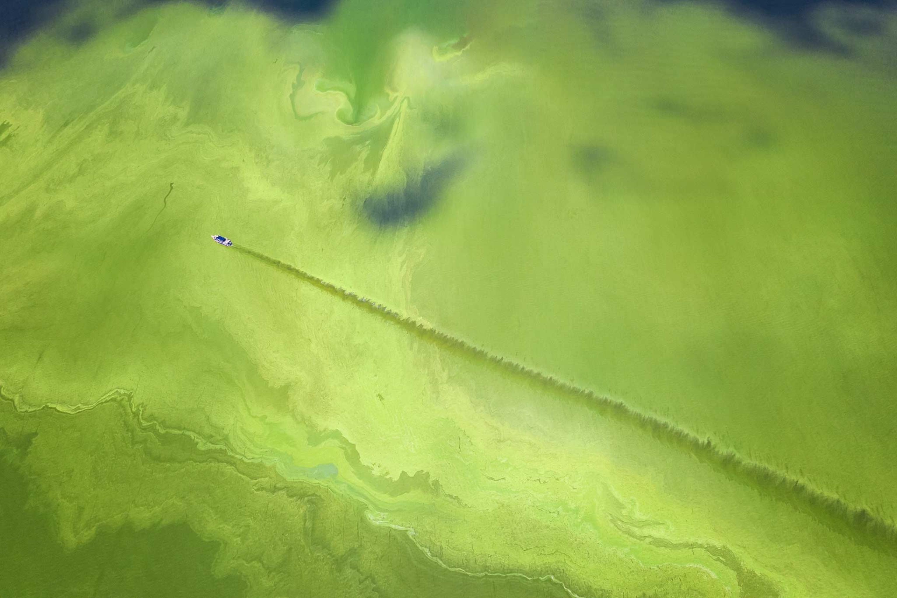 It looks beautiful at first, and then you realize: You are staring at an ecological disaster. The small research vessel is cutting through an algae bloom on Lake Erie that extends far beyond the frame of this image. Read more from Keith Ladzinski on our Instagram page.