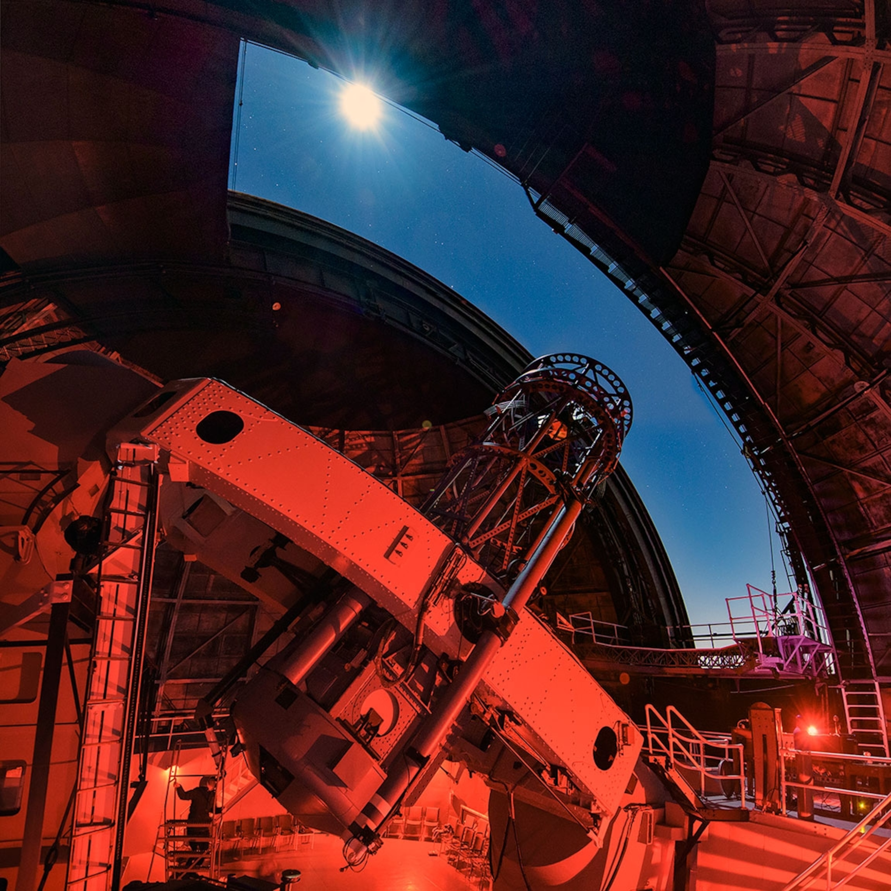 Isn’t it romantic? Hooker Telescope on Mount Wilson in Los Angeles is among the world’s largest publicly accessible telescopes, where people come to observe the night sky—and sometimes even propose marriage. Built in 1917, this 100-inch reflector was the world's largest telescope until Mount Palomar, with its 200-inch telescope, opened in 1949. Mount Wilson is where Edwin Hubble proved the existence of other galaxies beyond the Milky Way and later discovered the expansion of the universe. Photographer Babak Tafreshi, who has been shooting the night sky for more than two decades, was recently there on the night of a nearly full moon. See Tafreshi's work here, here, and here.