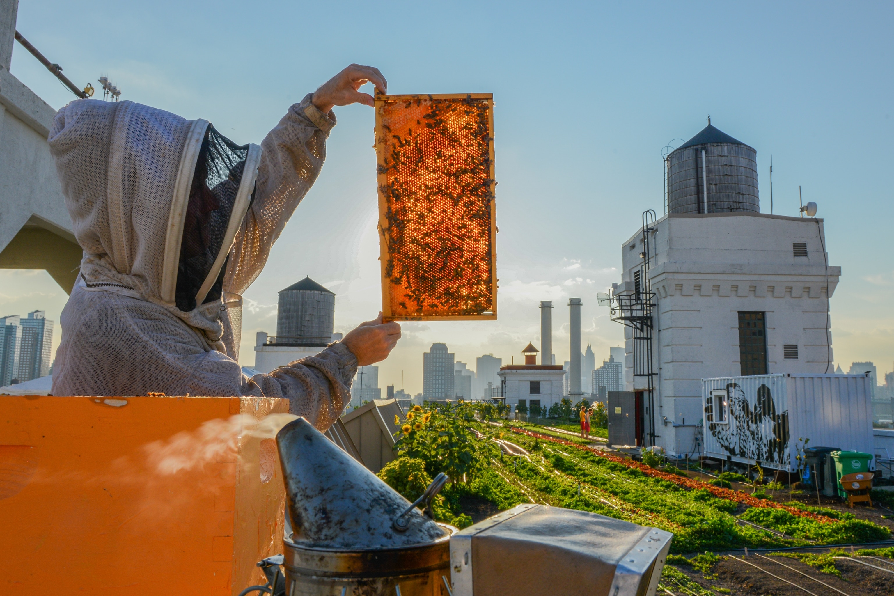 Up on the roof: Brooklyn Grange, located across three roofs in New York City, is among the world’s largest rooftop soil farms. The farm grows more than 80,000 pounds of organically cultivated produce per year. The farm also keeps 20 beehives on rooftops of New York City buildings, producing hundreds of pounds of honey annually. Depending on the season's floral bloom, bees can fly seven miles to collect nectar from Central Park or the High Line.