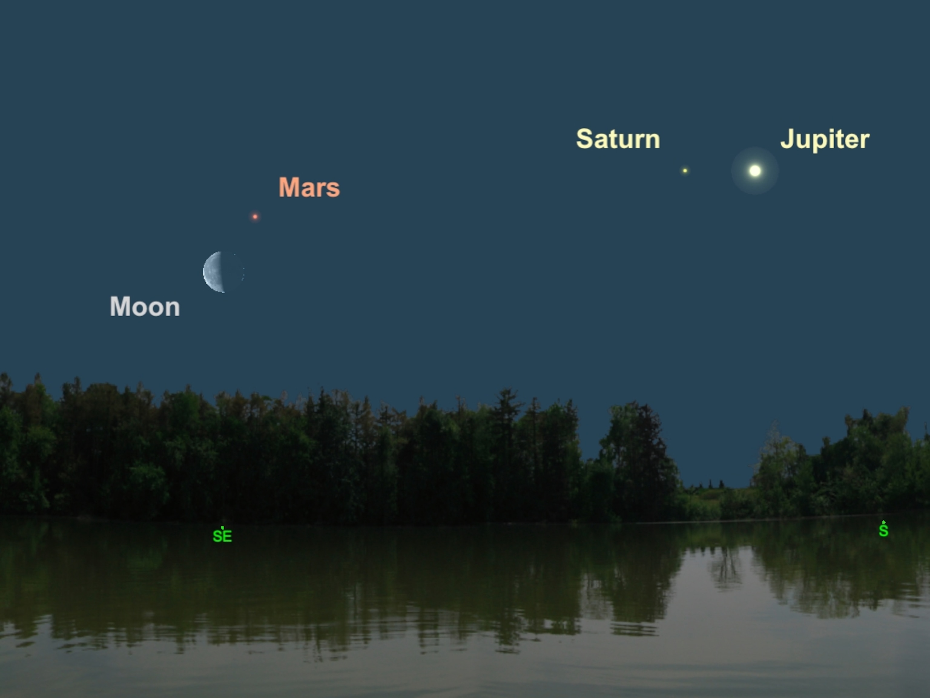 Moon meets Mars: As dawn breaks on Thursday and Friday, look for the near quarter moon posing beside Mars in the southeastern sky. From one day to the next, watch for the moon to hop from one side to the other of the ruddy-colored world. In the next few months, Earth will been getting closer to more distant, slower orbiting Mars. As a result, sky-watchers will see the red planet start to brighten. As we head for Earth’s closest approach to Mars for the year on October 13, people using backyard telescopes will get increasingly better views of Martian surface features. —Andrew Fazekas