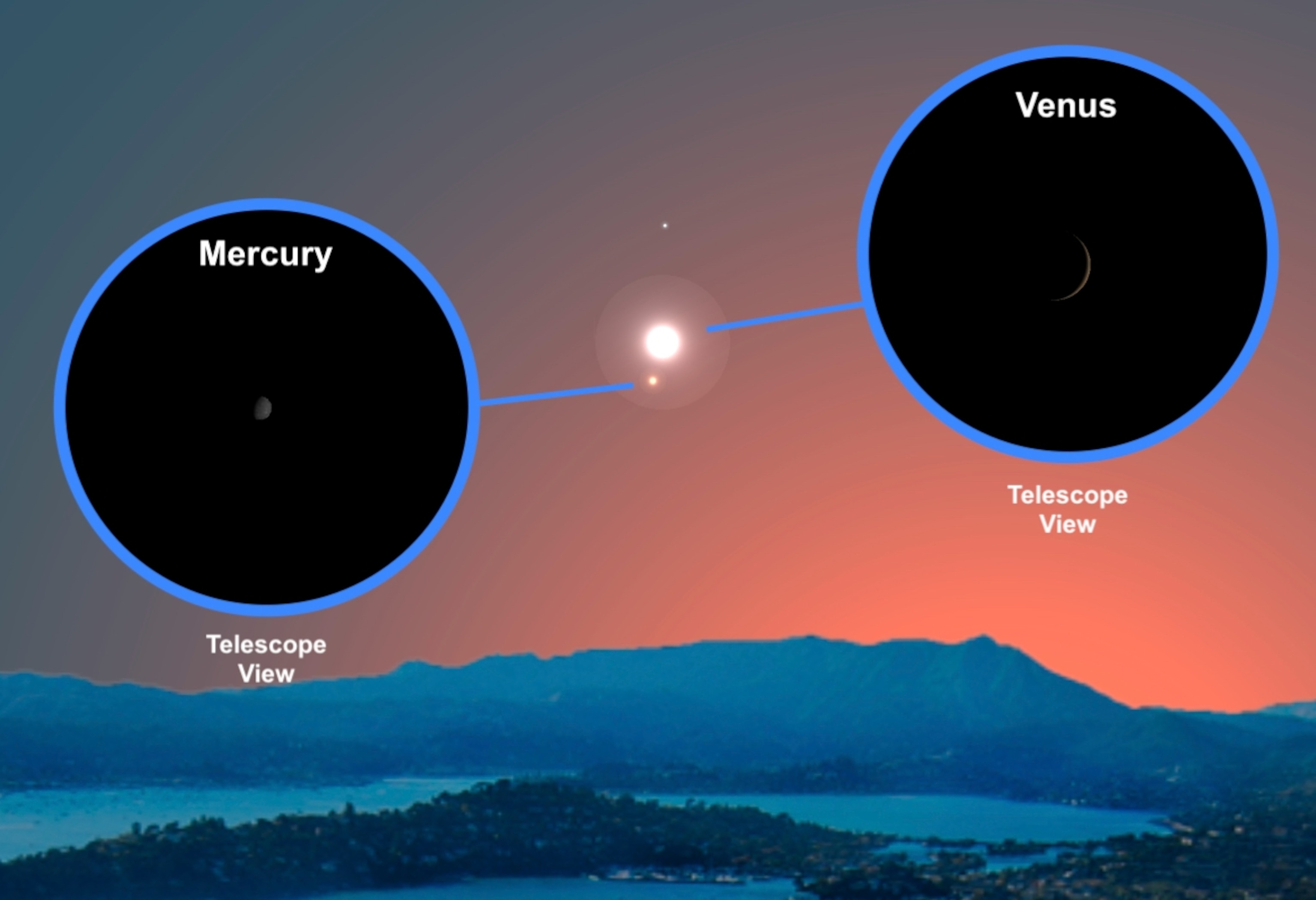 Sunset planet show: About 30 minutes after sunset Thursday and Friday, look toward the low western sky for an impressive close encounter between the two innermost planets, Venus and Mercury. They will appear closest together about 45 minutes to an hour after sunset on May 21, when they will be separated by about one arc-degree—equal to the width of your little finger or index finger held at arm’s length. Binoculars will help you hunt down Mercury in the sunset glow, but it should be visible to your unaided eye once you know where to look next to super-bright Venus. If you can train a backyard telescope on the cosmic pair, you will notice a dramatic contrasting view between the two planets. Mercury will appear as a tiny version of the gibbous moon, while right next to it will be a much larger, razor-thin crescent Venus. —Andrew Fazekas