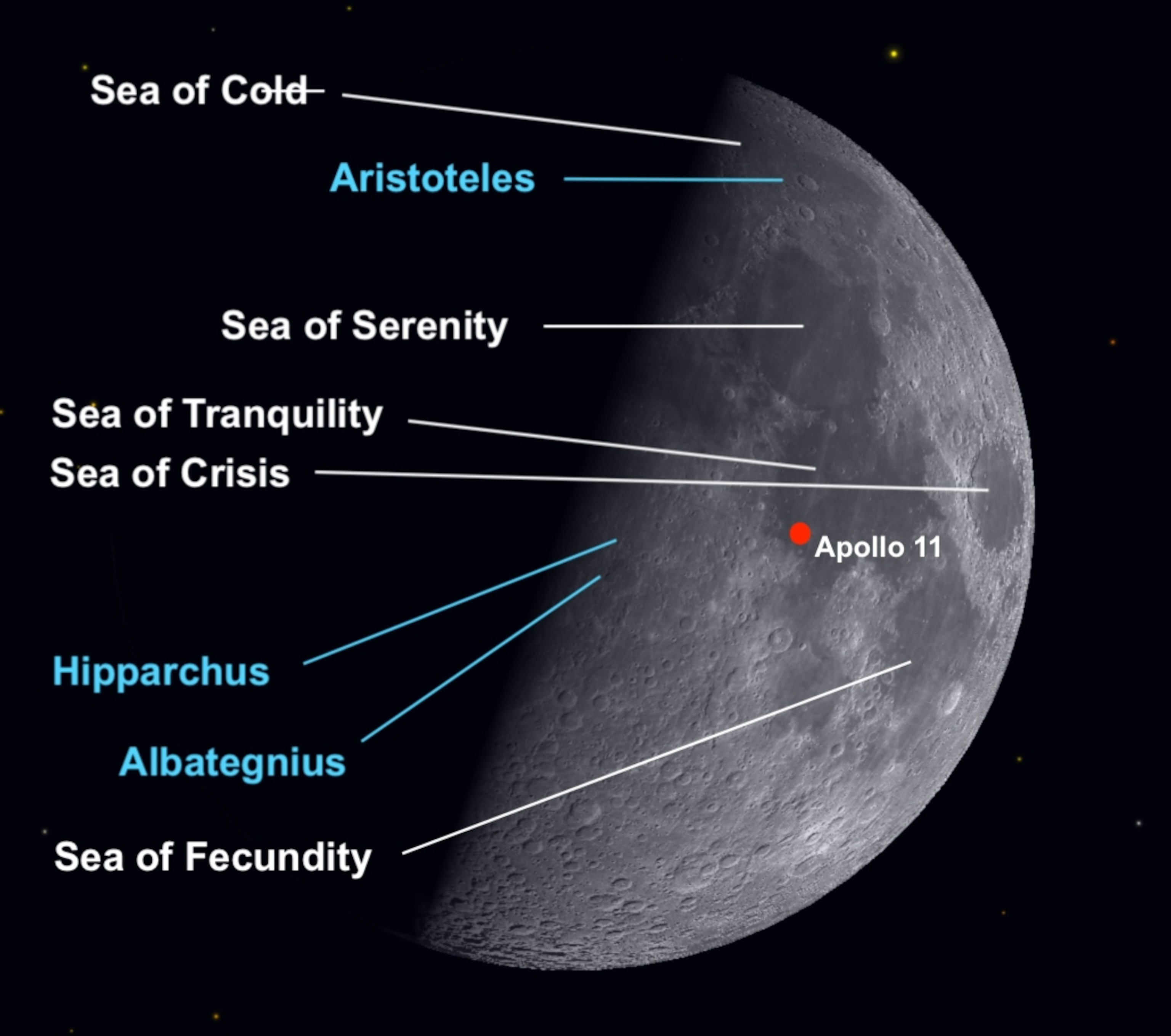 Destination Moon: On Friday, the moon reaches its first quarter phase, allowing you to see the distinctly dark gray regions that are called maria, or seas. These are smooth plains of solidified lava formed when giant asteroids struck the moon billions of years ago. Can you spot the Sea of Tranquility, where Apollo 11 touched down? Use binoculars and telescopes to sweep down the shadow line that divides the light and dark portions of the lunar disk. It’s along this line where the sun shines low on the rugged lunar terrain. Sweep down to the more southern part of the moon and take a peek at two giant craters lying side-by-side, just southwest of the Sea of Tranquility. The larger one, 93 miles wide, is Hipparchus, while the other is 81-mile-wide Albategnius. — Andrew Fazekas
