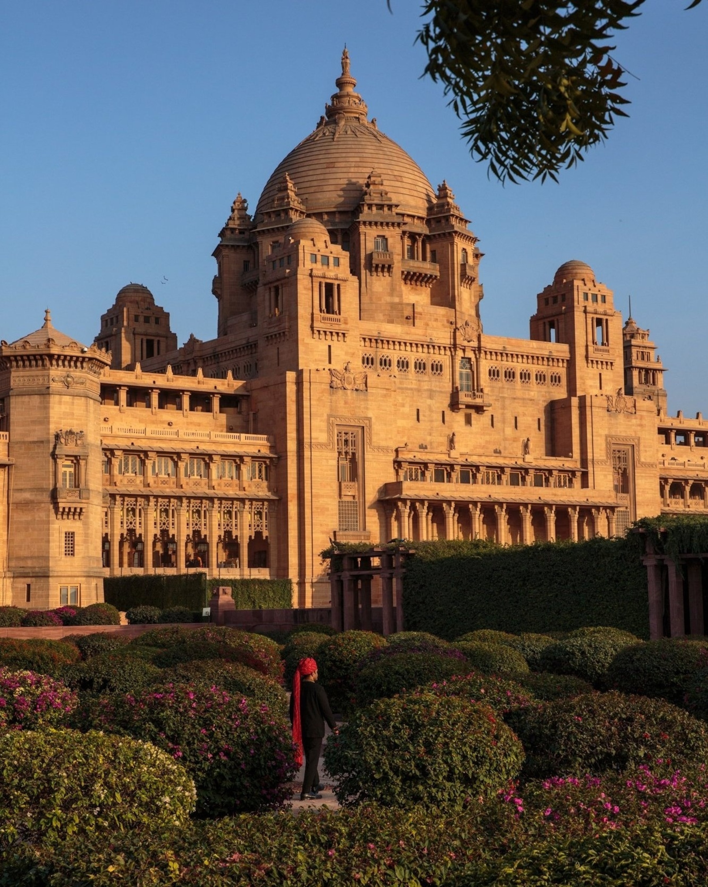 Golden Hour: The sun settles over the Umaid Bhawan Palace in Jodhpur, Rajasthan. Jodhpur also is known as the Blue City, for the number of homes painted blue in the old fortified part of the city in northwestern India. “The food, the chai, the light, and the architecture make Jodhpur one of my favorite cities to explore,” says photographer Sara Hylton.