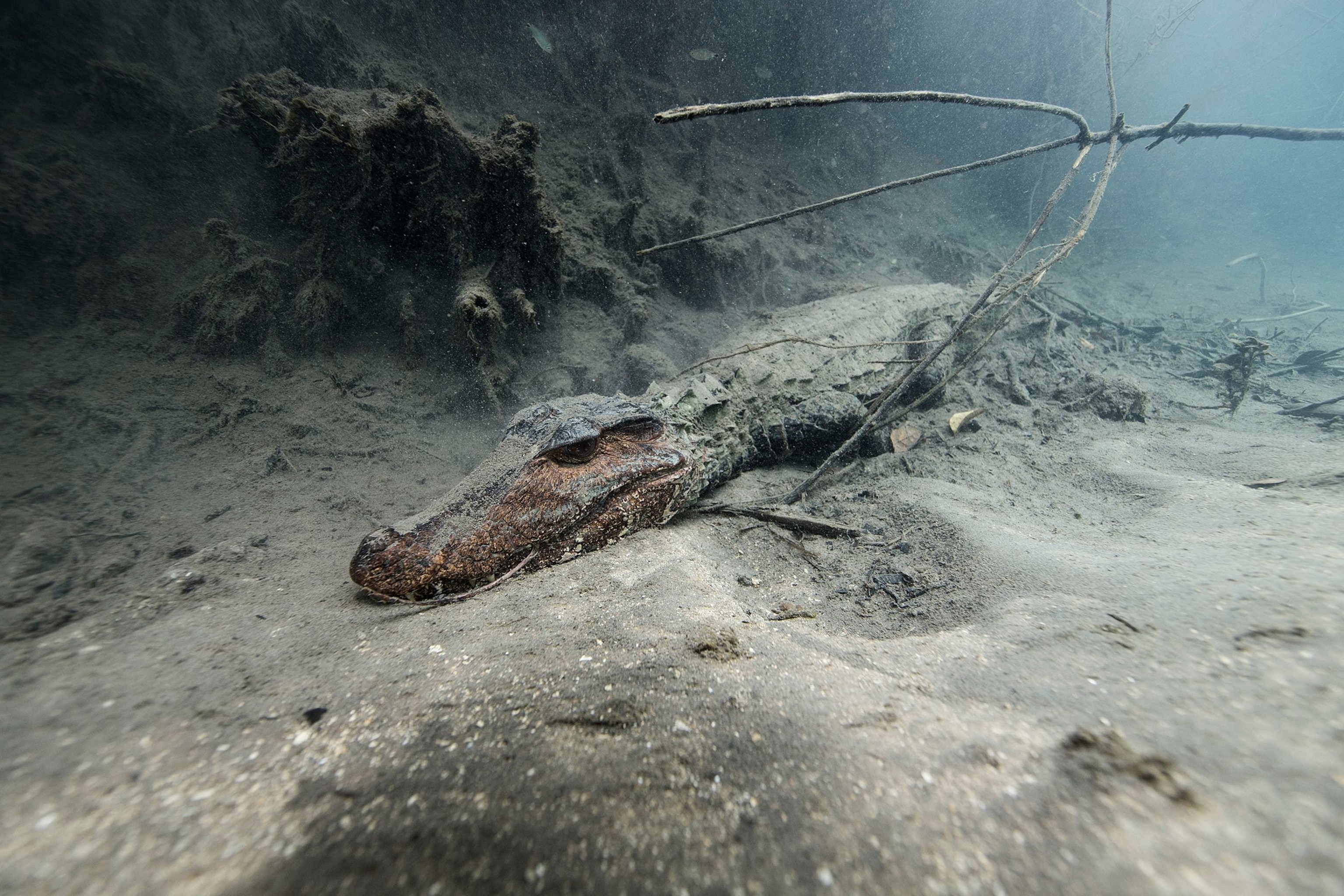 A caiman rests on the bottom of Brazil's Formoso River. Caimans eat fish and small birds, and they themselves can fall prey to anacondas and jaguars. This photo was submitted to Your Shot, our photo community on Instagram. Follow us on Instagram at @natgeoyourshot or visit us at natgeo.com/yourshot for the latest submissions and news about the community.