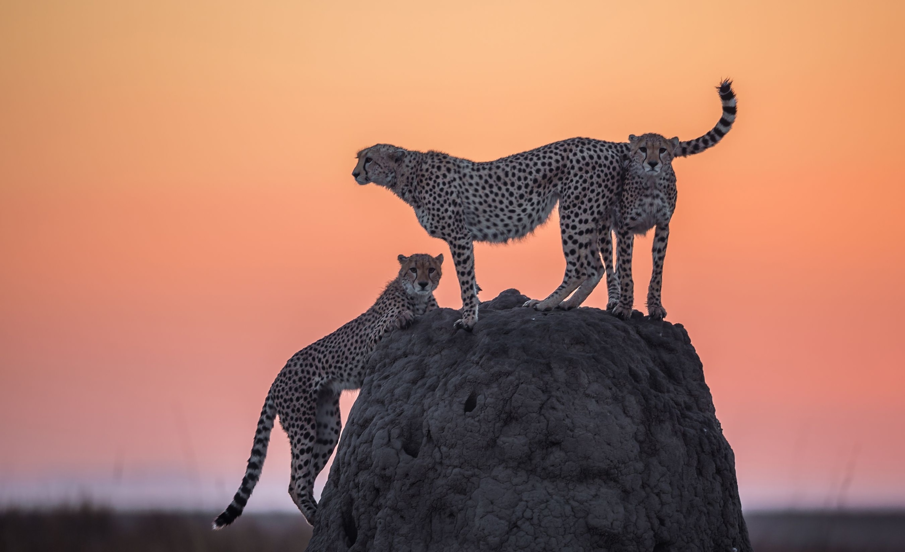 In Masai Mara National Reserve, a trio of cheetahs gathers atop an elevated rock, hoping to spot their first meal of the day at sunrise. Cheetahs in Masai Mara, a nearly 600-square-mile slice of the Greater Mara Ecosystem, will find these raised platforms like rocks—and even safari vehicles—to give themselves a better vantage point as they search for food. This crew wasn’t entirely willing to share this prime lookout—they wouldn’t make room for a fourth cheetah to join them, writes Your Shot photographer Ali Saifaldeen.