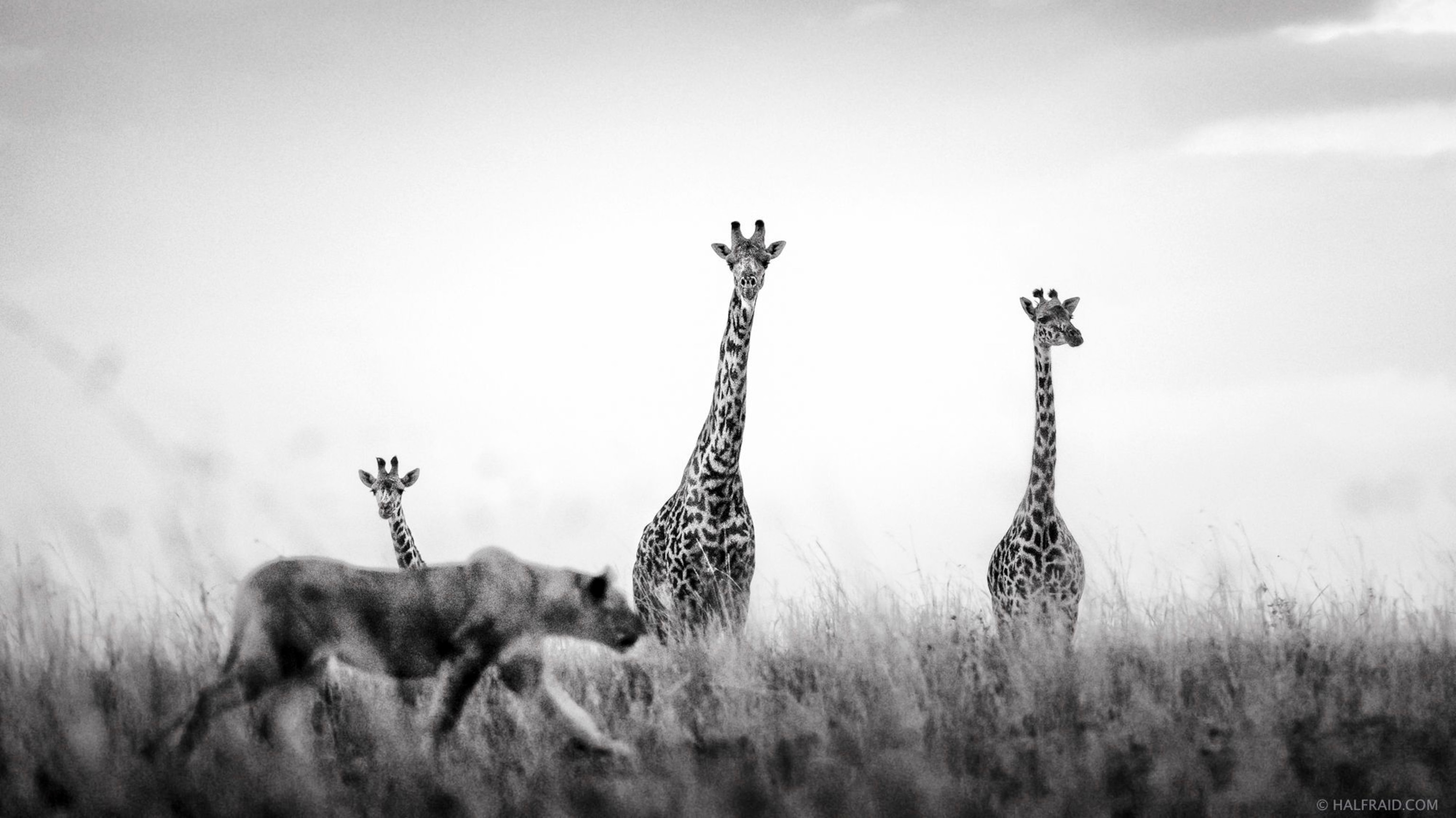 A lioness on the hunt gets unexpected company in the form of three curious giraffes in Masai Mara, Kenya. Masai giraffes are the largest species of giraffe-- meaning they're the world's tallest land animals. This photo was submitted to Your Shot, our photo community on Instagram. Follow us on Instagram at @natgeoyourshot or visit us at natgeo.com/yourshot for the latest submissions and news about the community.