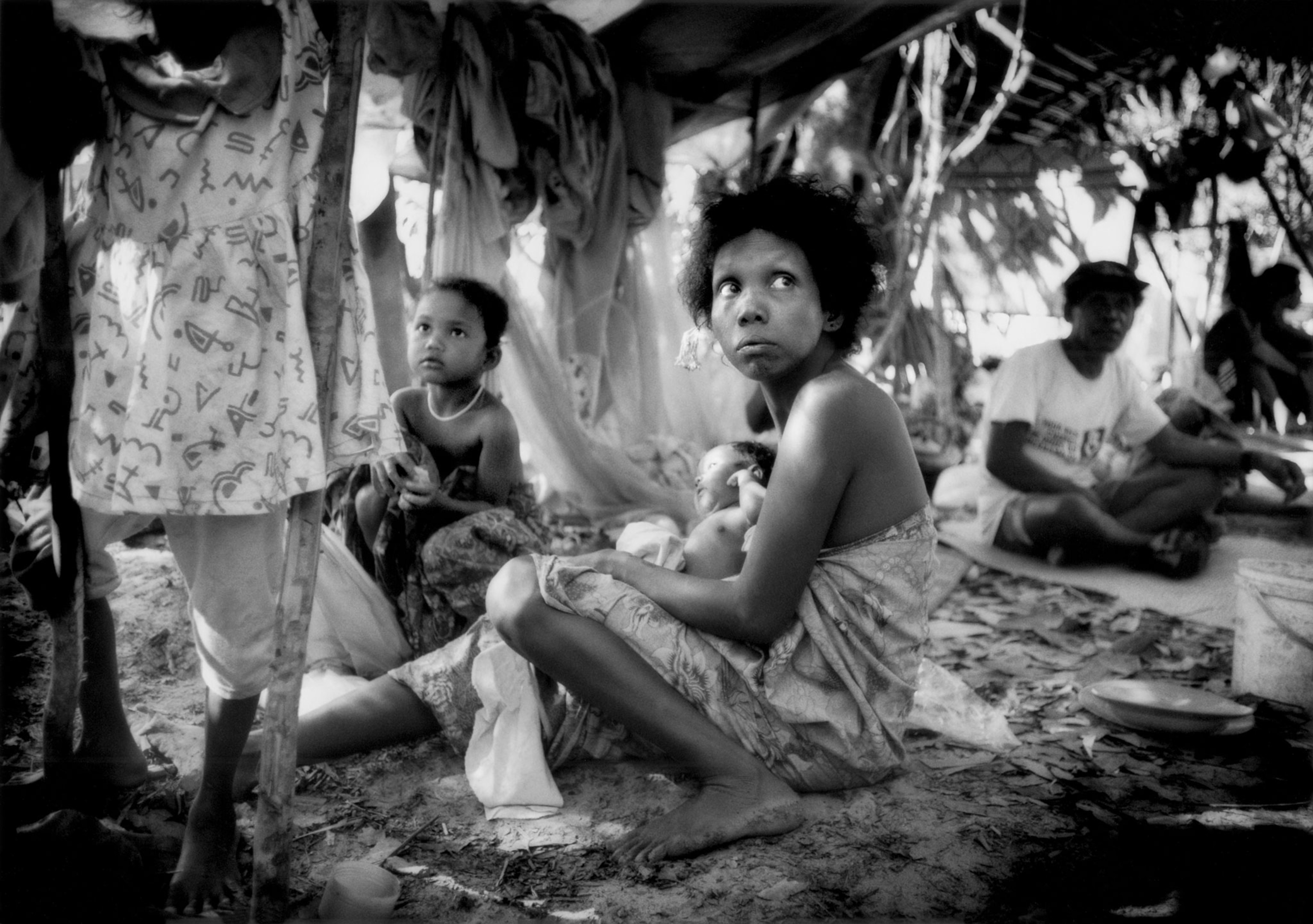 JAMES: I shot the project with a Leica m6 with a 35mm lens. My m6 is my new camera, and it’s 27 years old. They are quiet and low-key. Sometimes in places where plain-clothes police have a heavy presence or in areas of conflict or high crime, there is no better camera. My work and photo philosophy, although less evident in the rain forest work than urban work, is deeply influenced by the likes of Henri Cartier-Bresson, Robert Frank, and Gary Winogrand. Black and white felt right; it inherently takes a step back from reality and examines it in a different way, almost paring it down to tones and shadow.