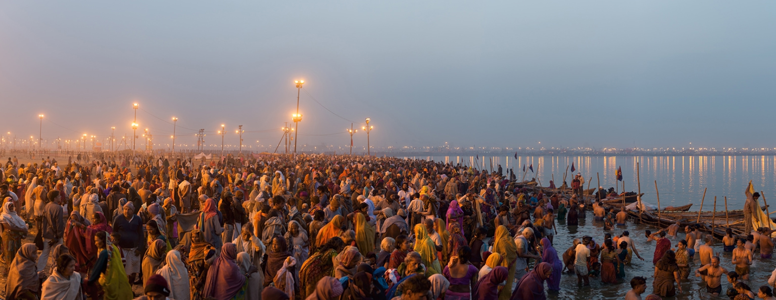 Every 12 years, when the stars align just right, the annual cleansing ritual of mela becomes the world’s largest religious celebration—the Maha Kumbh Mela. Over a period of about eight weeks, millions of Hindu pilgrims converge on the city of Allahabad, India, to wash away their sins in the confluence of the Ganges and Yamuna Rivers, thus becoming one step closer to heaven. Photographer Alex Webb spent a month experiencing this epic spiritual gathering in early 2013. His photographs appear in “Karma of the Crowd,” published in the February 2014 issue of National Geographic.
