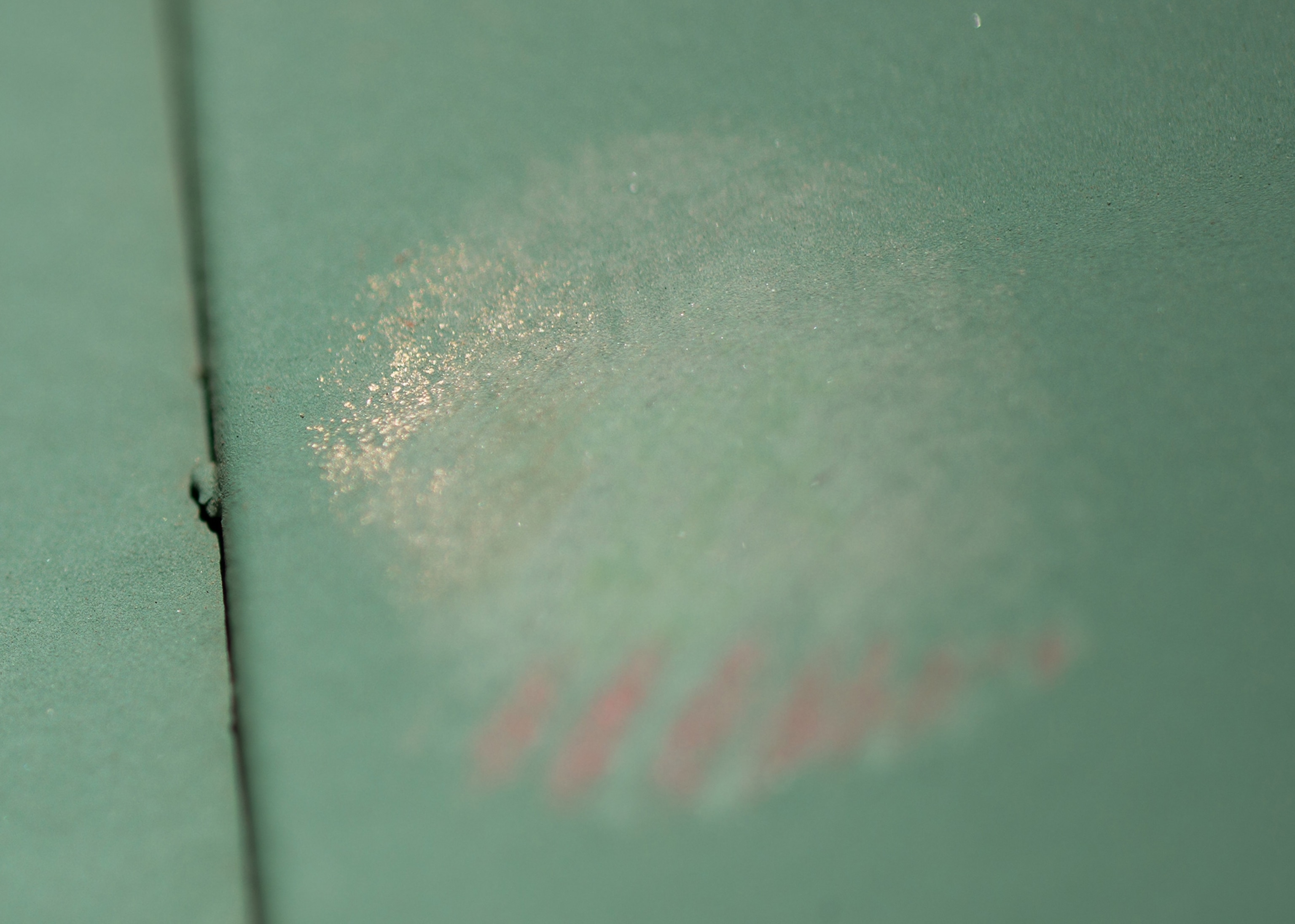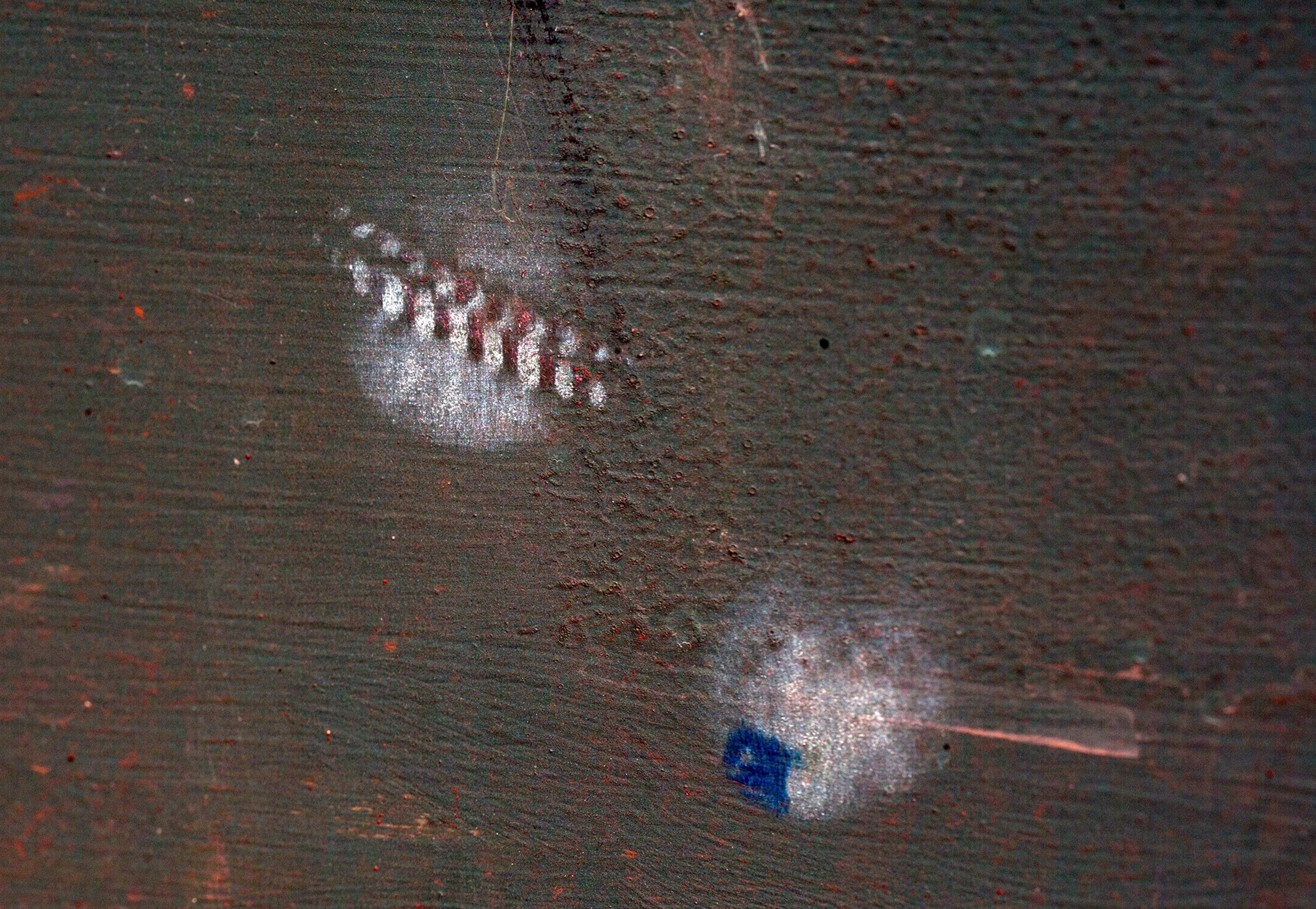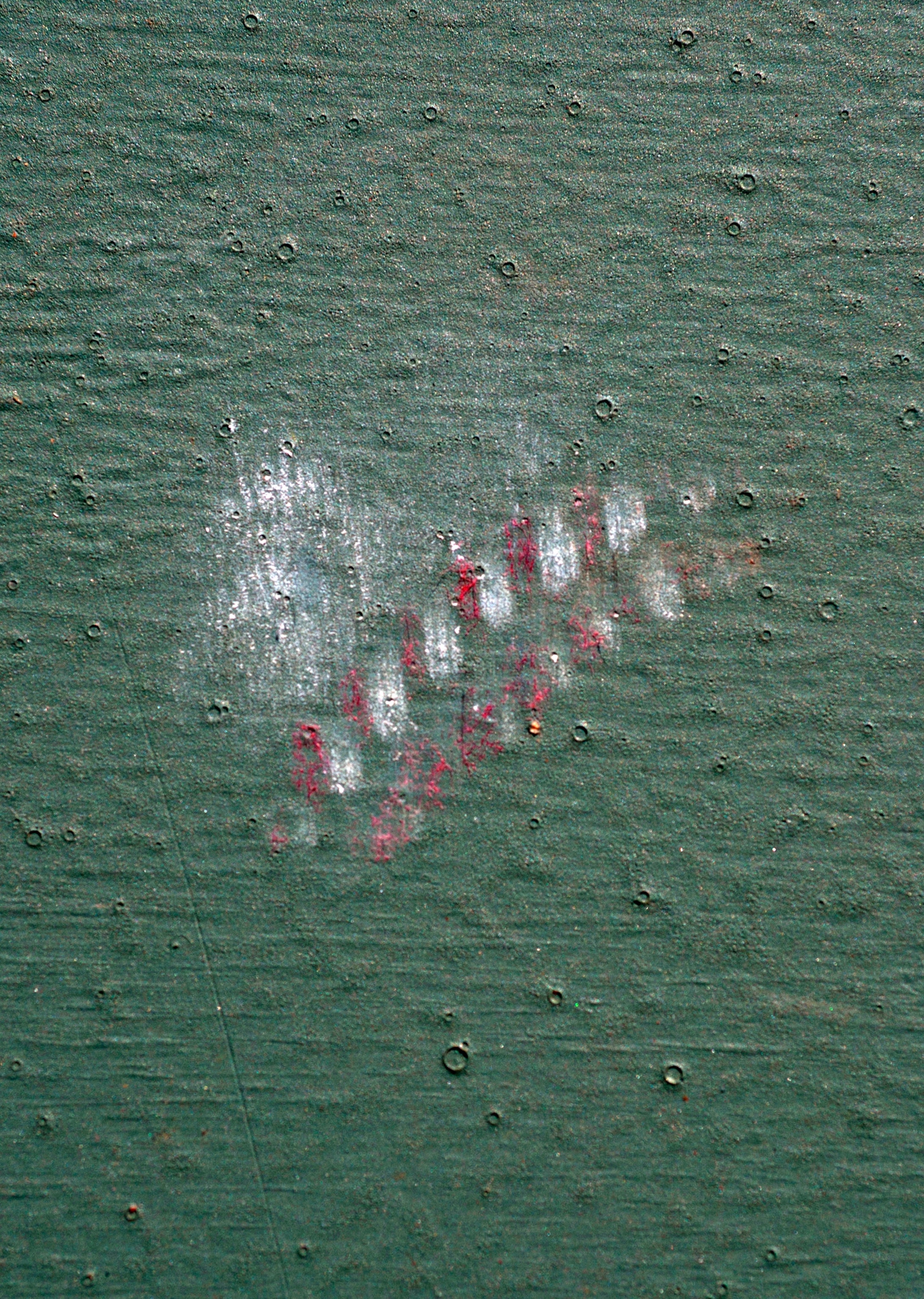 A veteran sports photographer, Gunther began going to the ballpark to photograph the marks on off days and before team batting practice. Using a tilt-shift lens, Gunther gets close to his subject while also trying to incorporate details beyond the “fingerprints.” Working mainly from the ground or a stepladder, Gunther has also scaled the wall on larger ladders perched along the Green Monster. “It’s not just composition,” he says, “it’s also texture, the details of the wall, the dirt, the bubbles in the paint. I liken it to finding a pretty shell along the shore.”