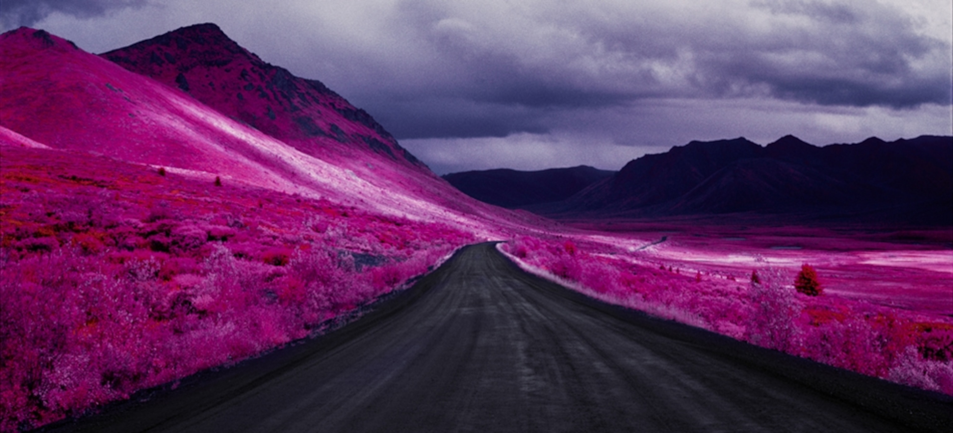 When artist Daniel Zvereff saw Richard Mosse’s “Infra” film project from the Congo, he knew he had to find a way to make the most of the discontinued, magenta-hued film. Known as “Kodak Aerochrome,” this film was originally intended for aerial photography to indicate areas of vegetation in surveys and to find camouflaged military encampments. Kodak describes it as “infrared-sensitive, false-color reversal film.” Plant life turns to a majestic red or purple hue while non-plant life often renders in grey or blue.
