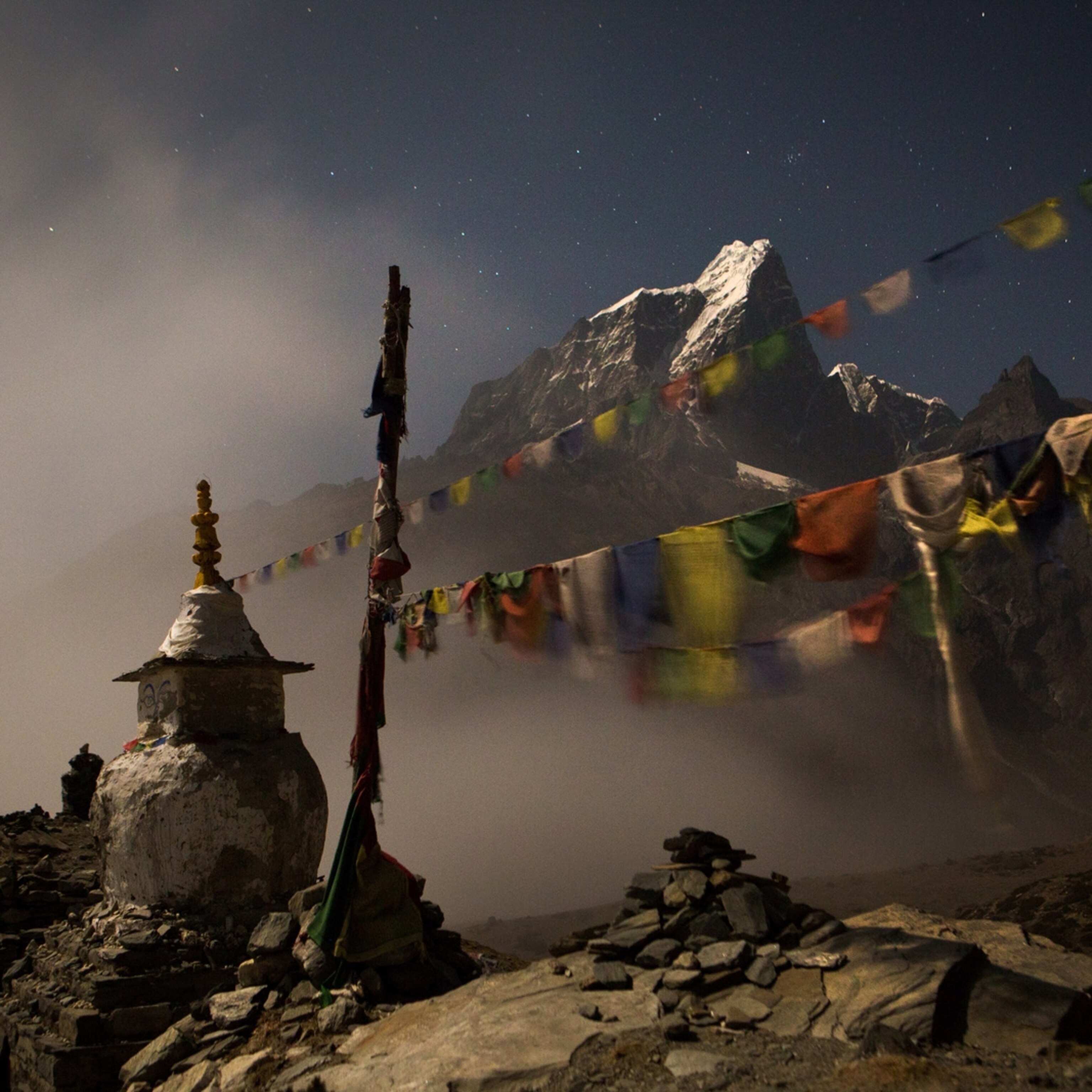 And so, eventually, as the sky slowly lights up in blues and pinks illuminating the massive hanging glaciers and the back side of Ama Dablam, I am able to think further than 30 feet. Finally! I can use my camera! Perfect light. Absolutely perfect.