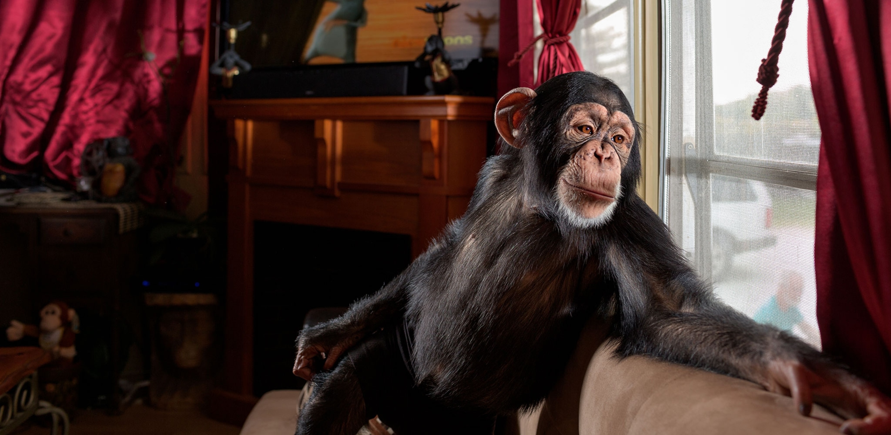 My paradigm is that good photography should conjure more questions than it answers. Much more. Vince’s photo of the four-year-old Chimpanzee, Chance, carries this essential quality.