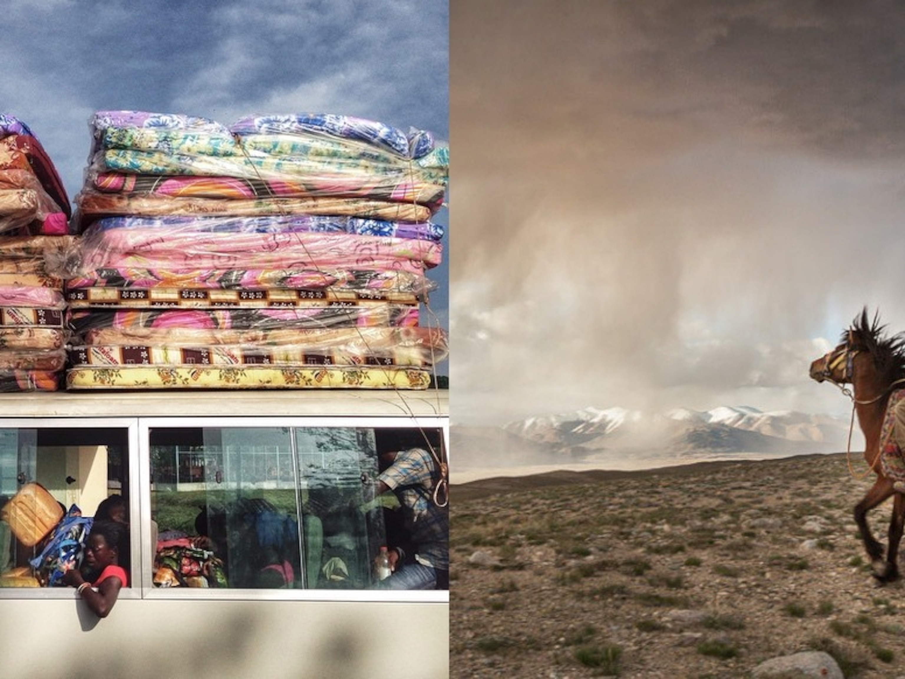 Recently Steber has been working on an occasional series where she photographs women with different types of flowers, carefully pairing them together. I also was intrigued by a few of her recent photos that looked like abstract composites. She says, “I was on the train in Florida and I was shooting with my iPhone in panorama mode, so besides moving the phone horizontally, I also moved it vertically real fast just to see what would happen. I had so much fun with that.”