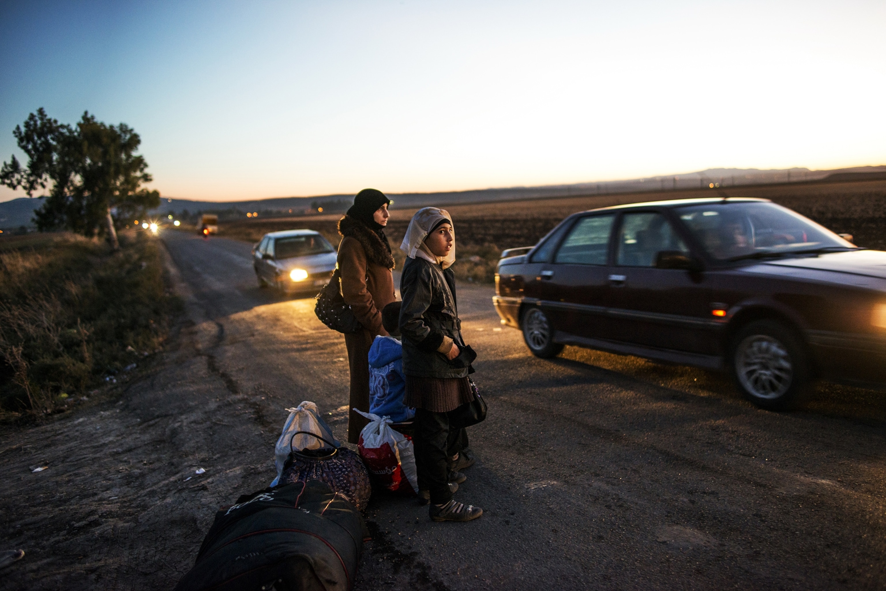 There was an area where I heard that there were a lot of Syrians crossing at night and I said, ‘Okay. I’m going to go there.’ I went probably about three in the afternoon. I didn’t see any movement but I did see some cars lingering. The Syrians cross to a smuggler’s village and then make their way to the main highway. They are picked up by off-licensed taxis, regular cars, which charge to take them to the cities, and so I knew if the cars were lingering, they obviously knew the refugees were coming.