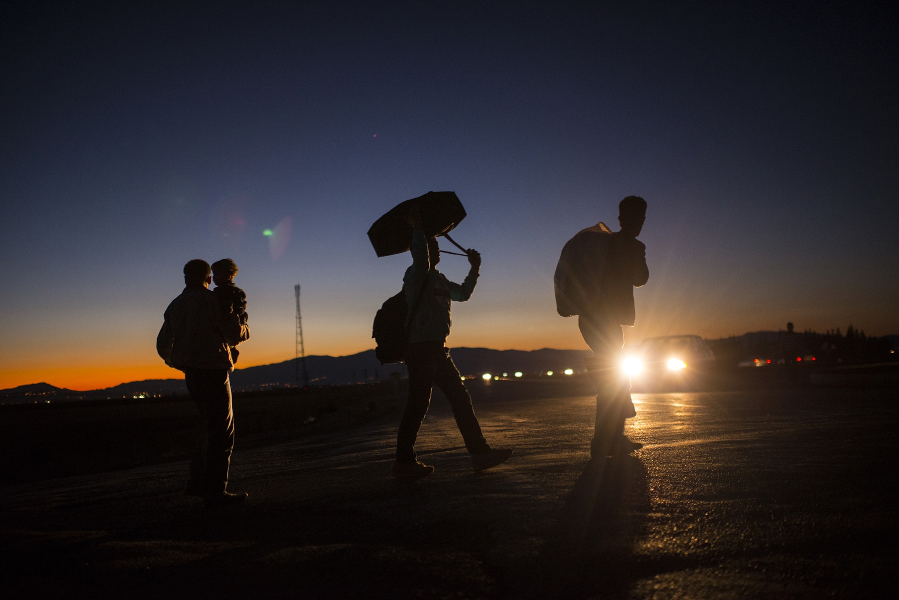 It was amazing. They were in the backs of trucks. They were walking. They were carrying their suitcases, and they all were crossing the highway, getting into cars waiting for them, and then driving off into Turkey.”