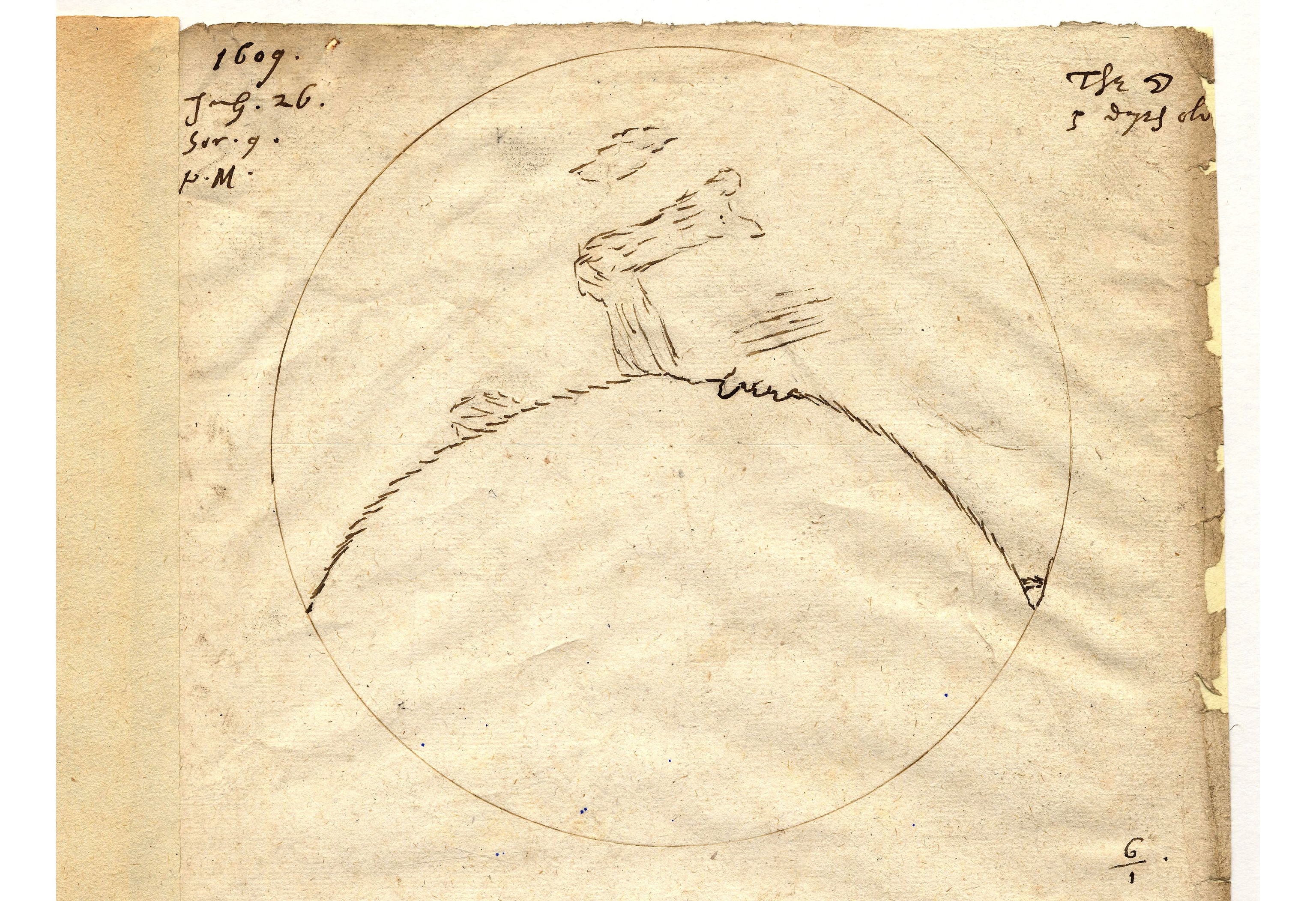 “Today, when we are so used to seeing detailed images of the Moon, the July 1609 sketch can be quite difficult to appreciate,” says Megan Barford, Curator of Cartography at the Royal Museums Greenwich. "The shading indicates what we now describe as mare (lunar ‘seas’, which are actually plains of solidified lava), probably the Mare Crisium, Mare Tranquillitatis and Mare Foecunditatis. The curved line is the terminator, the edge of the illuminated surface of the Moon.”