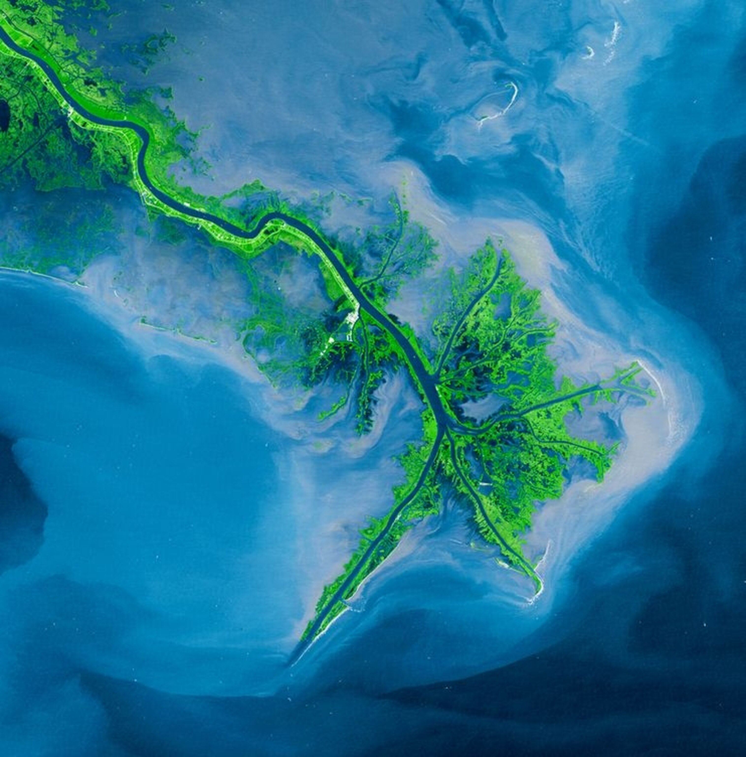 This is done to prevent the river's course from changing over time, as it naturally would, and encroaching into cities such as New Orleans. The river eventually empties into the Mississippi River Delta, located on Louisiana's Gulf Coast (see map.) The Atchafalaya empties farther west into the Gulf, in a region not yet threatened by the oil.