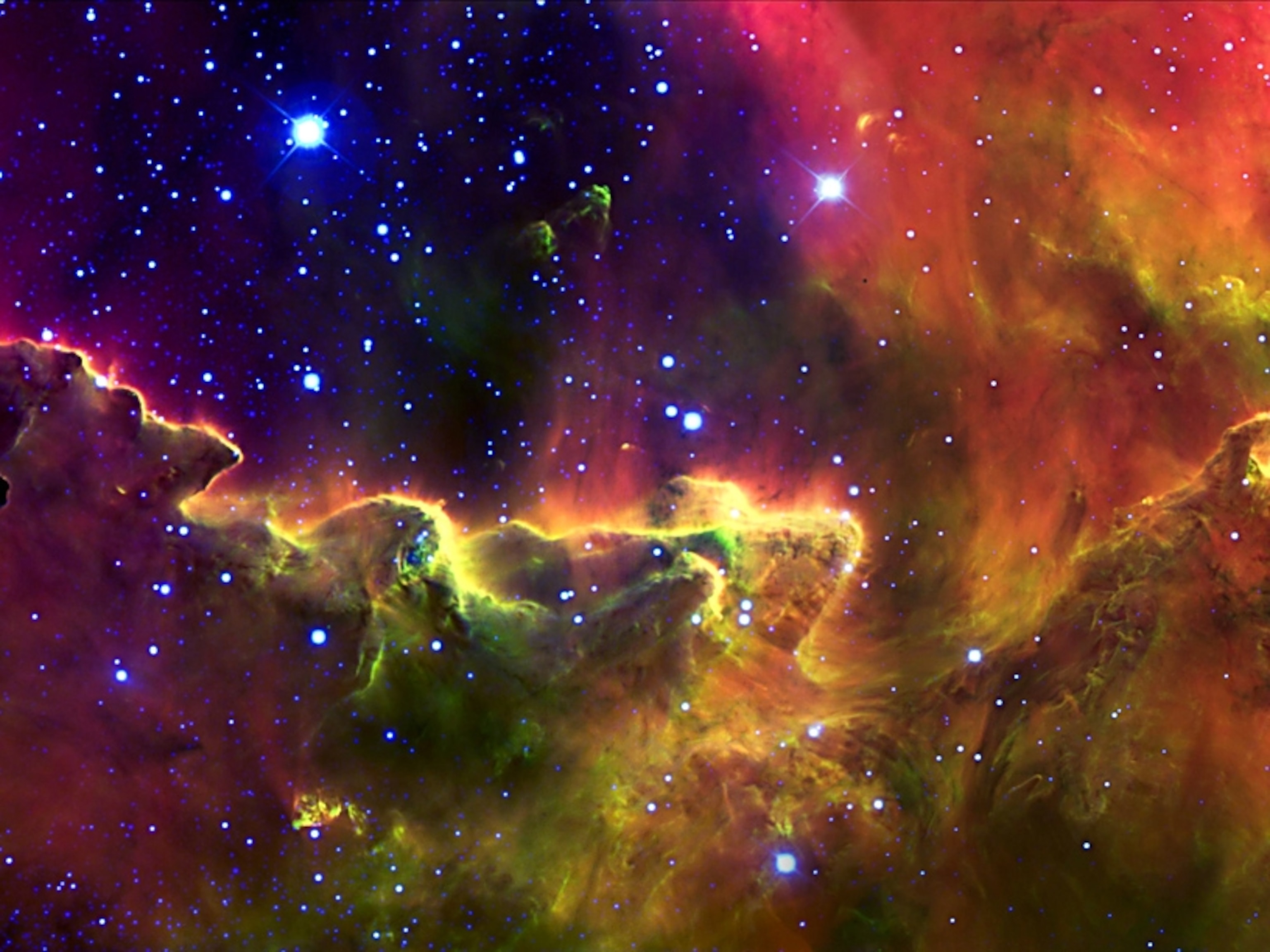 The space station makes an eclipse cameo, streams of dust carve a nebula, blue fans decorate Mars, and more in the week's best space pictures.