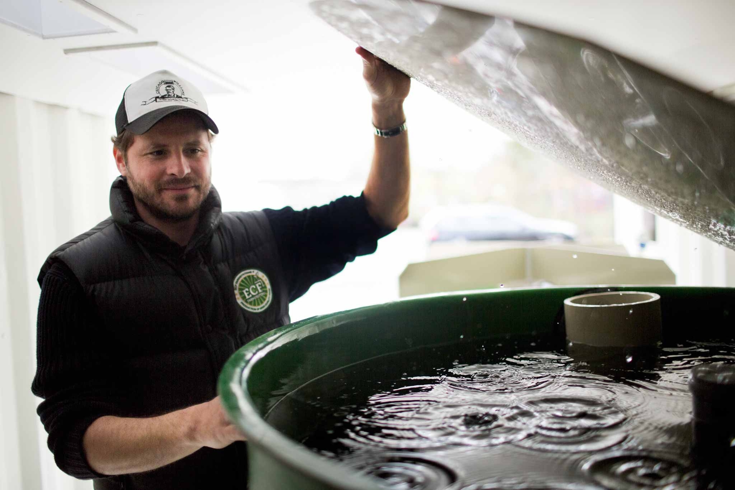 The container farm runs an aquaponics loop, where fish swim on the first level, and fresh vegetables like tomatoes, peppers, and potatoes grow in the greenhouse above. The fish waste is used to fertilize the plants. The plants help purify the water and return it to the fish below. When the farm expands later this year, the developers expect it to produce 6,000 tons of fresh fish—raised locally and with minimal input.
