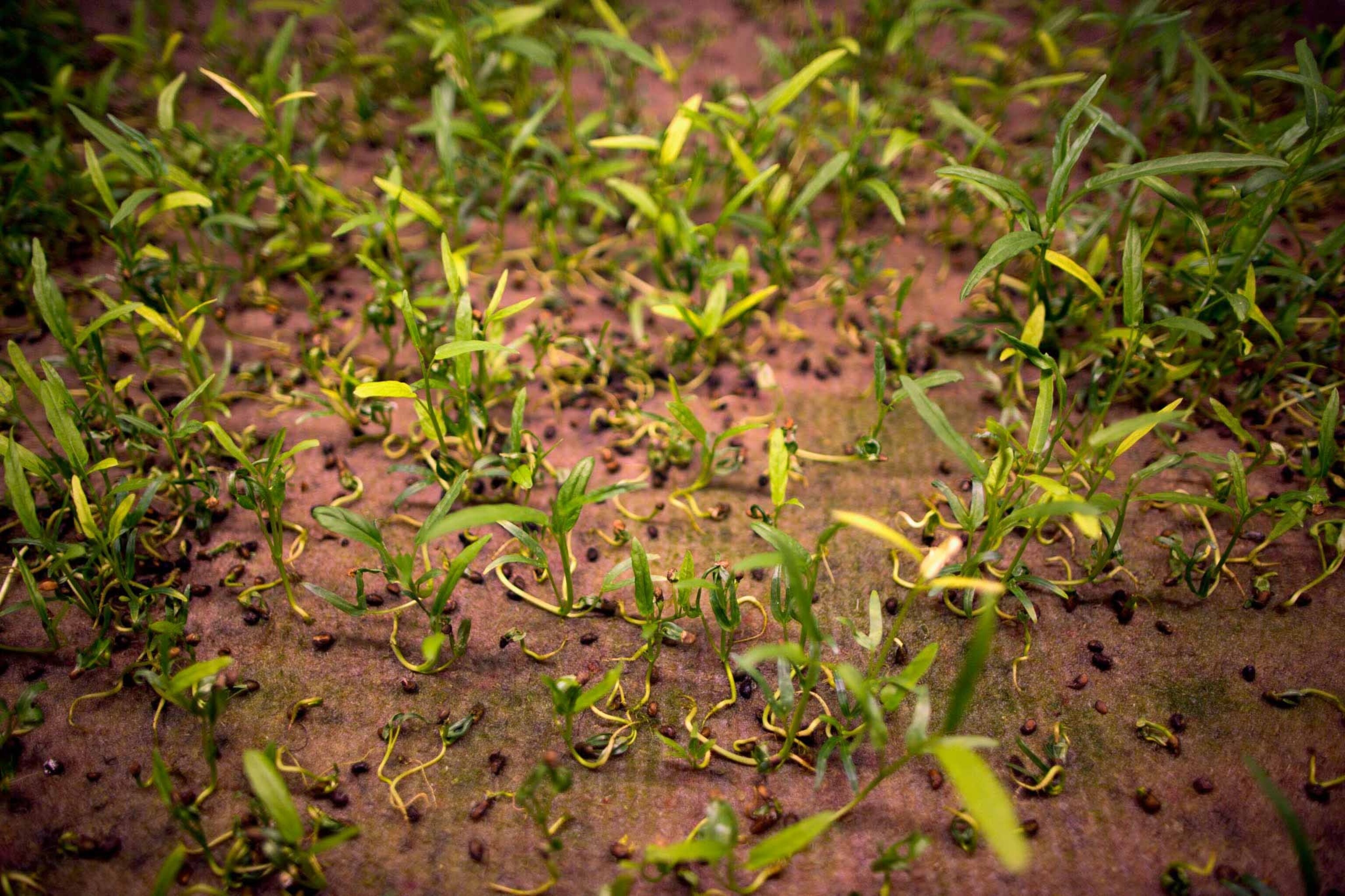 So it’s strange that in the middle of the day on a recent Thursday we’re walking through a dark tunnel on the way to a farm. The facility is a hundred feet below the streets of London, 179 steps down, in an old air-raid shelter built in 1944 for protection from German bombs. During the blitz more than 6,000 people huddled shoulder to shoulder in this small tunnel. Today the only overnight occupants are a few green shoots of radish, celery, and spinach. They’re prodded to grow by a simple aquaponics system where water circulates through a series of trays that hold the crops. There’s no soil, only old carpet from renovated hotel rooms. LED lights powered by wind turbines on the surface emit a light pink hue, the precise mix of ultraviolet and infrared light that the plants need. Anything extra would be wasted energy.