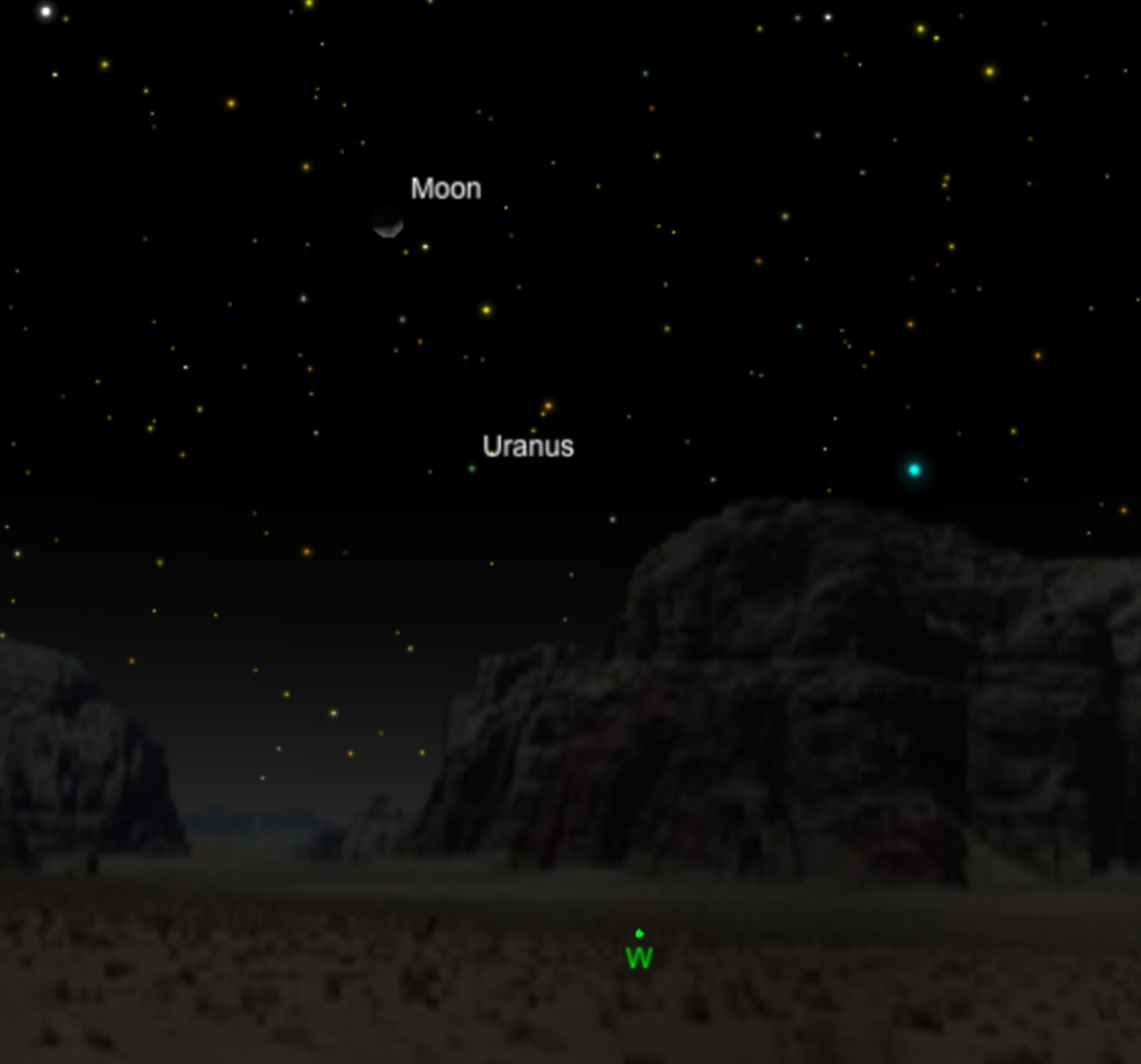 Moon and Uranus. After night falls on Sunday, January 25, look for the moon pairing up with the seventh planet from the sun, Uranus.